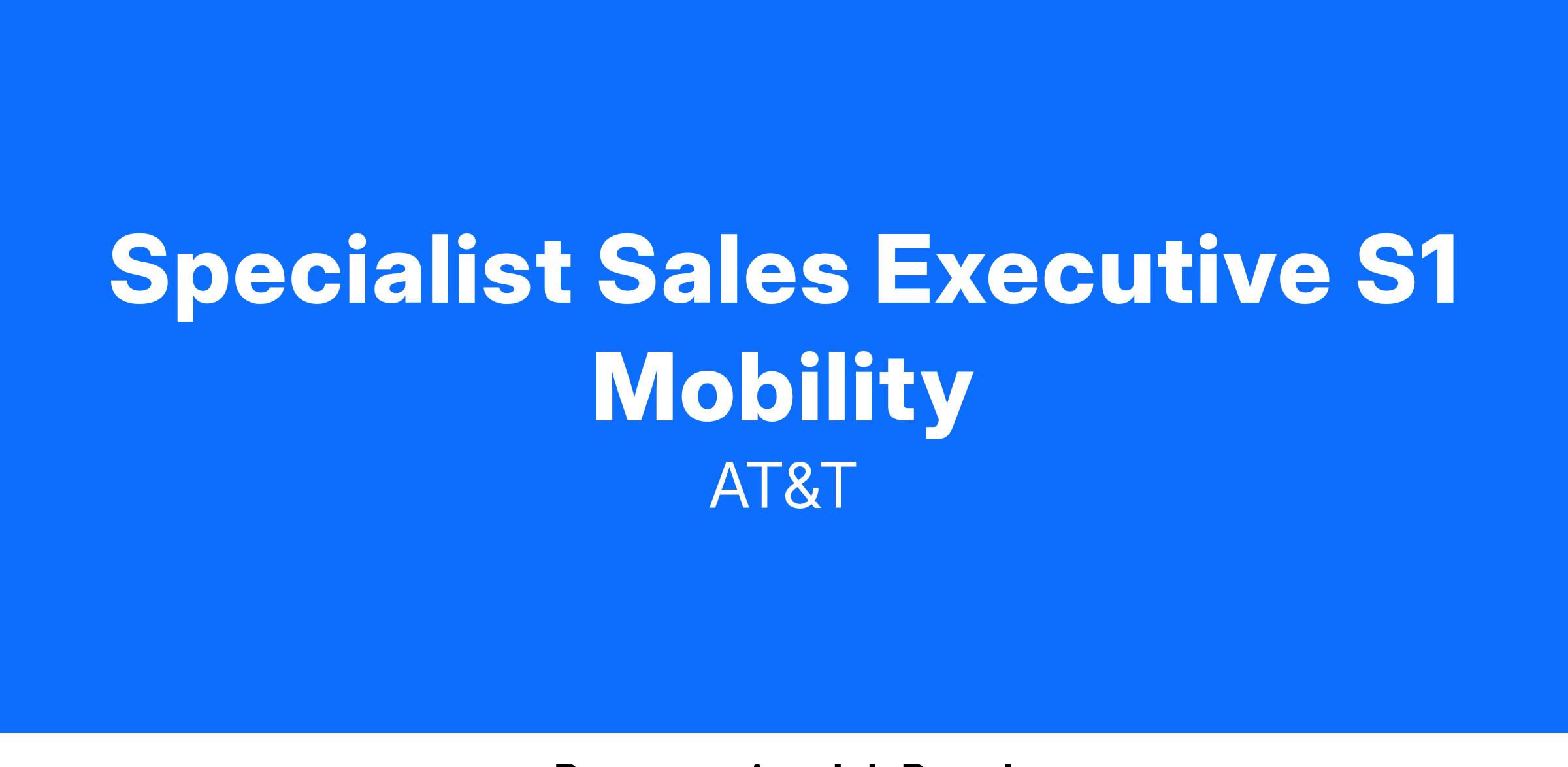 Our Specialist Sales Executive S1 Mobility, earn between $38,800 - $58,200 USD Annual + commissions with a total target compensation of $83,800 - $103,200 Not to mention all the other amazing rewards that working at AT&T offers. From health insurance to tuition reimbursement and paid time off to discounts on products and services just to name a few. There is a lot to be excited about around here. Individual starting salary within this range may depend on geography, experience, expertise, and education/training.