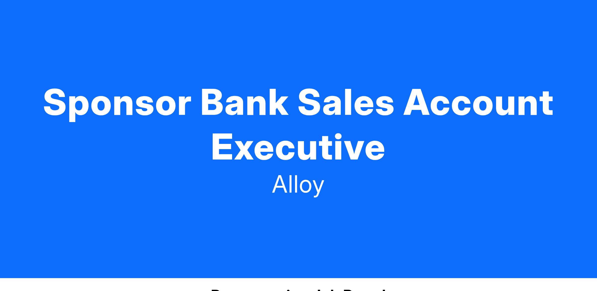 As a Sponsor Bank Sales Account Executive, you’ll be integral in expanding Alloy’s partner network of sponsor banks, helping us build relationships, negotiate deals, and identify new opportunities to drive growth. You’ll collaborate with internal teams, working closely with sales, product, and customer success, to support sponsor banks as they integrate with and utilize Alloy’s platform to serve fintech and business clients. This role requires a blend of sales expertise, knowledge of banking, and strong relationship-building skills to drive Alloy’s mission forward in embedded finance.