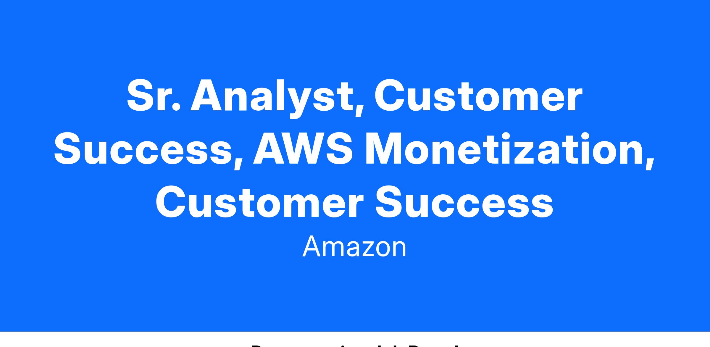Sr. Analyst, Customer Success, AWS Monetization, Customer Success