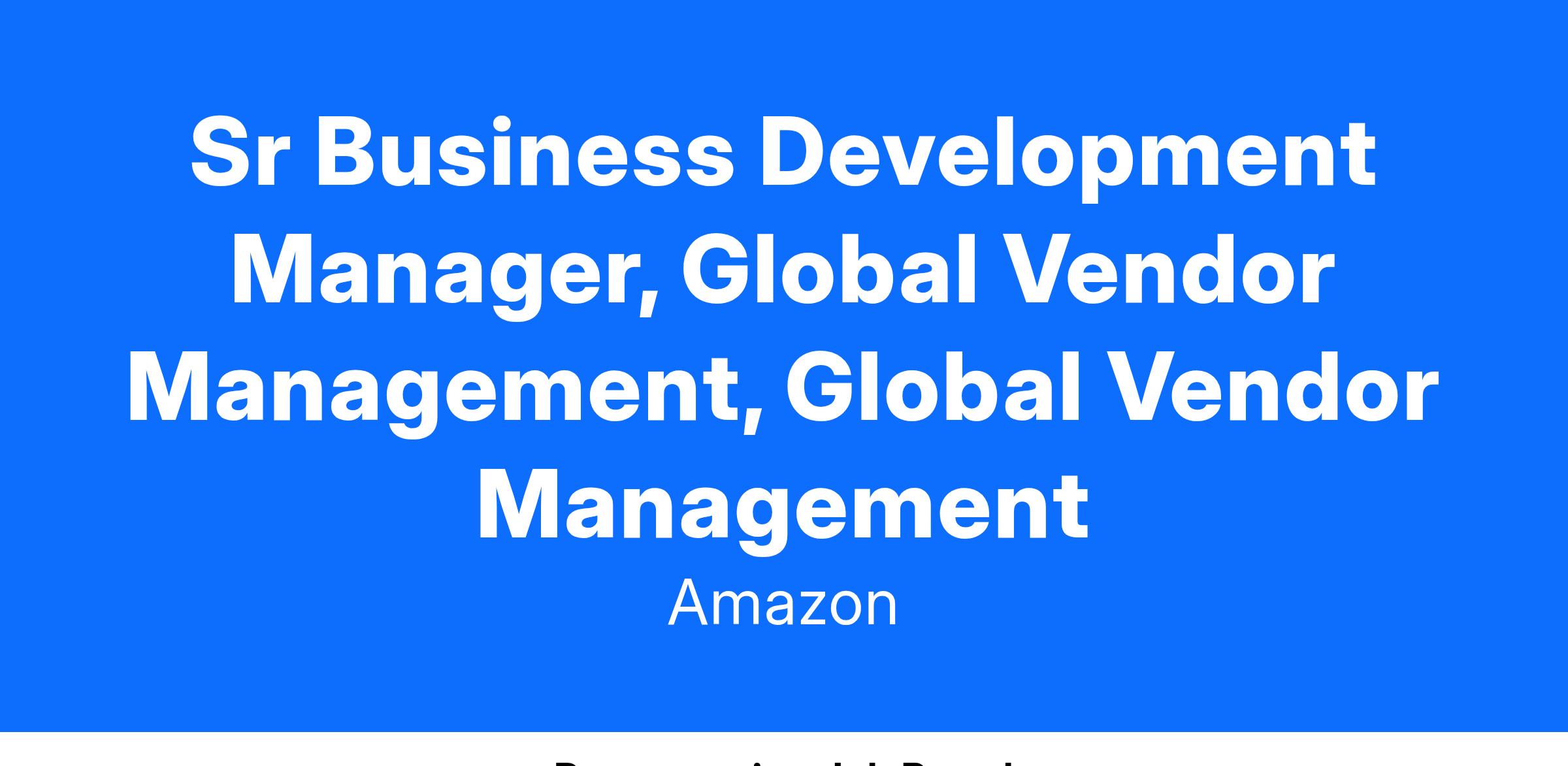 The Global Vendor Management (GVM) Program works with HQ senior leadership from a highly selective group of global Amazon vendors, to support the growth of our mutual business and total relationship success across worldwide Amazon. We are a global strategic business development team, seeking a customer-obsessed individual with excellent business judgement, to build collaborative relationships with vendor executives and Amazon teams across all Amazon countries and organizations (Retail, Advertising, Devices, AWS, Amazon Business, Logistics, and Sustainability). This a highly visible role and your work will directly impact how we evolve and grow Amazon’s global business.