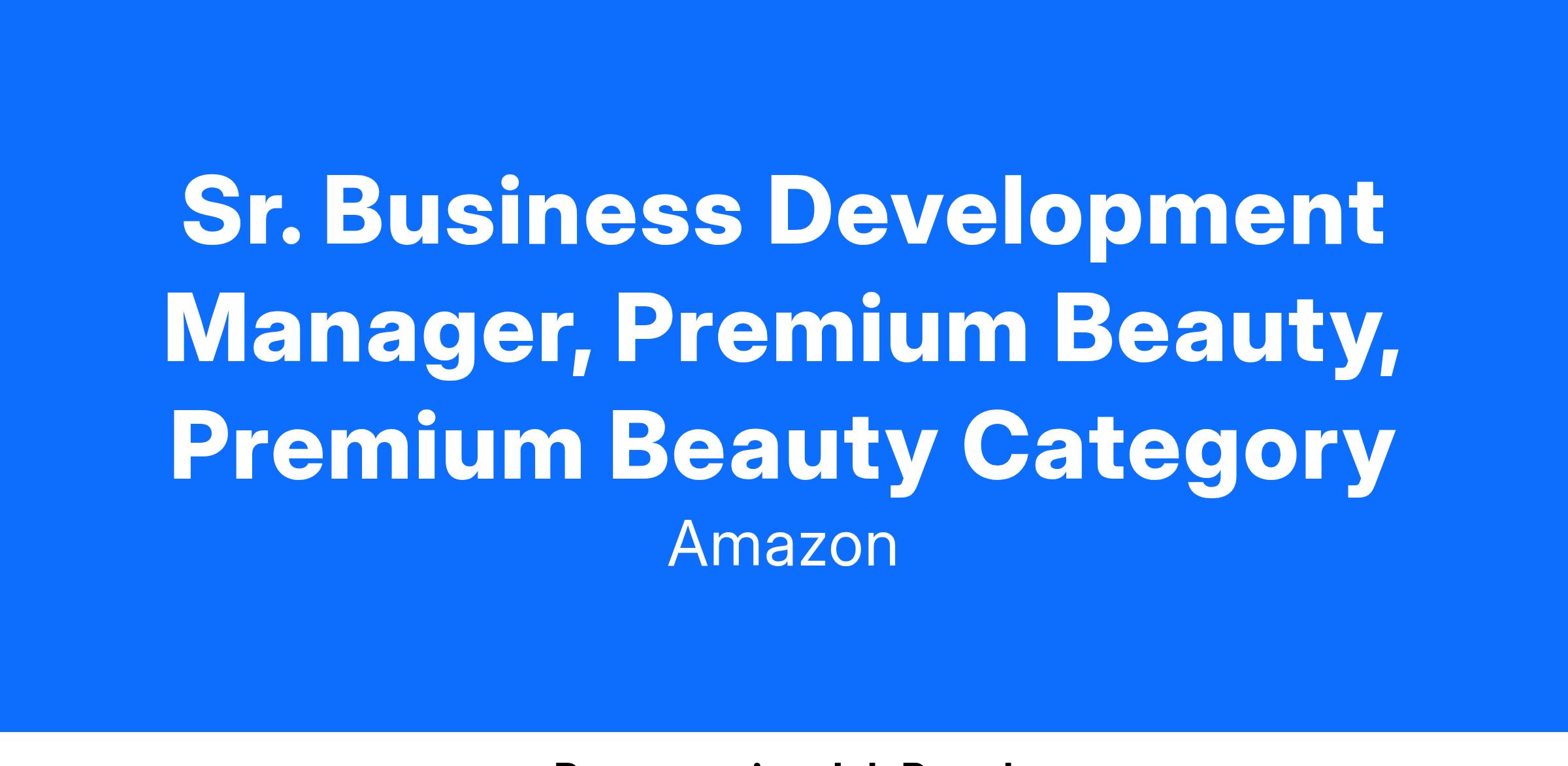 Sr. Business Development Manager, Premium Beauty, Premium Beauty Category