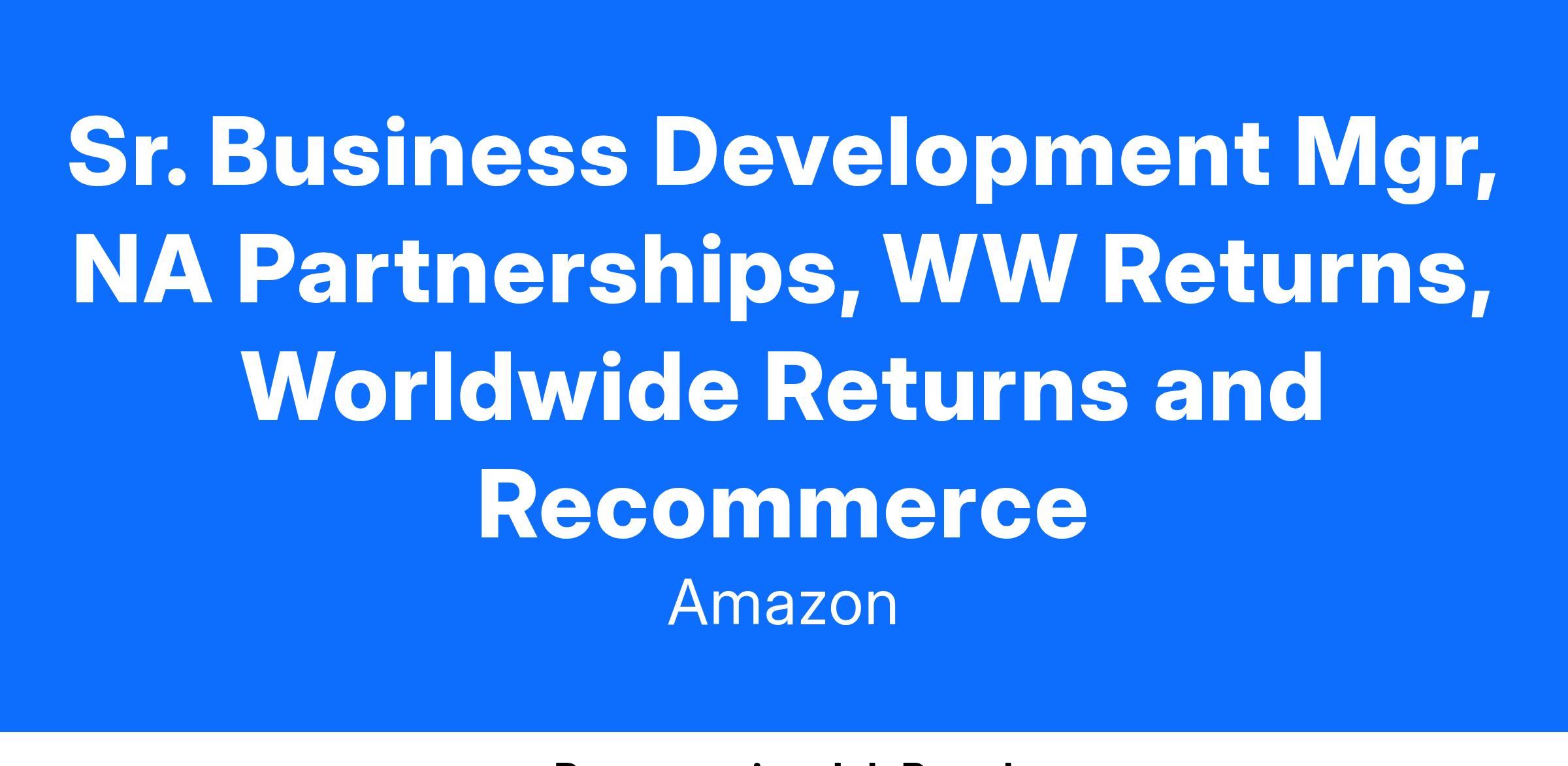 Sr. Business Development Mgr, NA Partnerships, WW Returns, Worldwide Returns and Recommerce