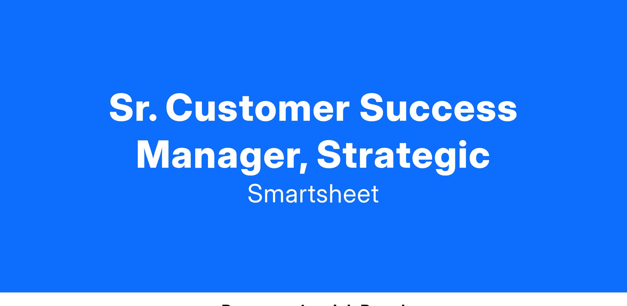 Smartsheet is looking for a Sr. Customer Success Manager, Strategic Accounts to manage a set of large strategic accounts and improve customer satisfaction, application engagement, customer retention, and growth. You will be the primary contact for customers, understanding their success criteria, sharing best practices, providing solution guidance, and helping them realize value from Smartsheet. You have a track record for Software as a Service (SaaS) account management and maintaining high customer renewal rates because of ongoing customer engagement and technical leadership.