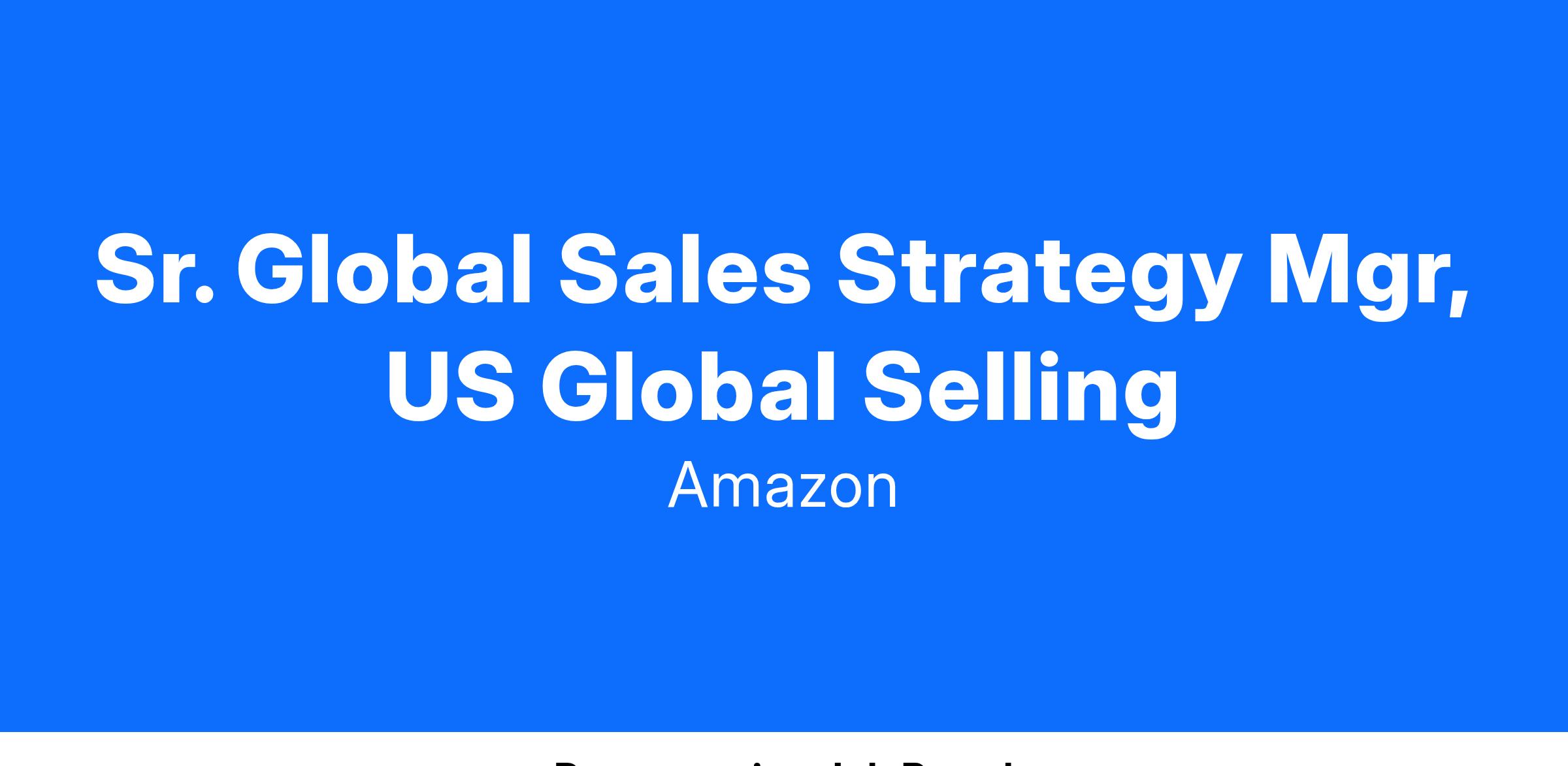 Sr. Global Sales Strategy Mgr, US Global Selling