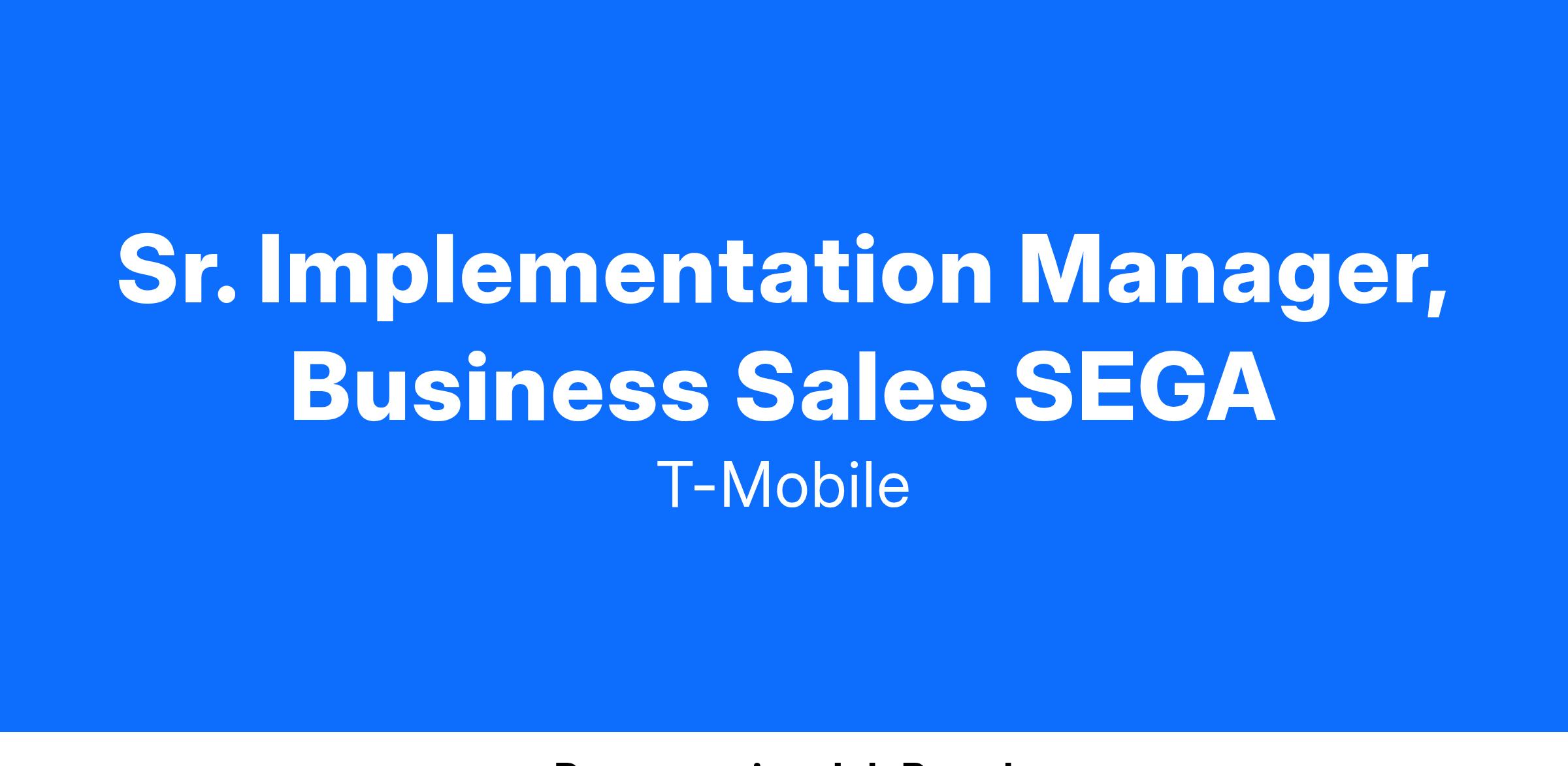 The Senior Implementation Manager (Sr. IM) is a field-based project management expert responsible for seamlessly and efficiently transitioning customers from all sales segments to T-Mobile's suite of solutions. The Sr. IM aims to deliver a world-class onboarding experience that begins at the start of the sales cycle and concludes after the customer's purchase has been fully implemented and is in use. The primary responsibility of the Sr. IM is to own and execute end-to-end onboarding and implementation plans for new and existing products, services, and solutions. The Sr. IM ensures that customers not only transition from competitor products and services to T-Mobile but also guarantees a seamless experience for end users, with zero negative impact to their business.