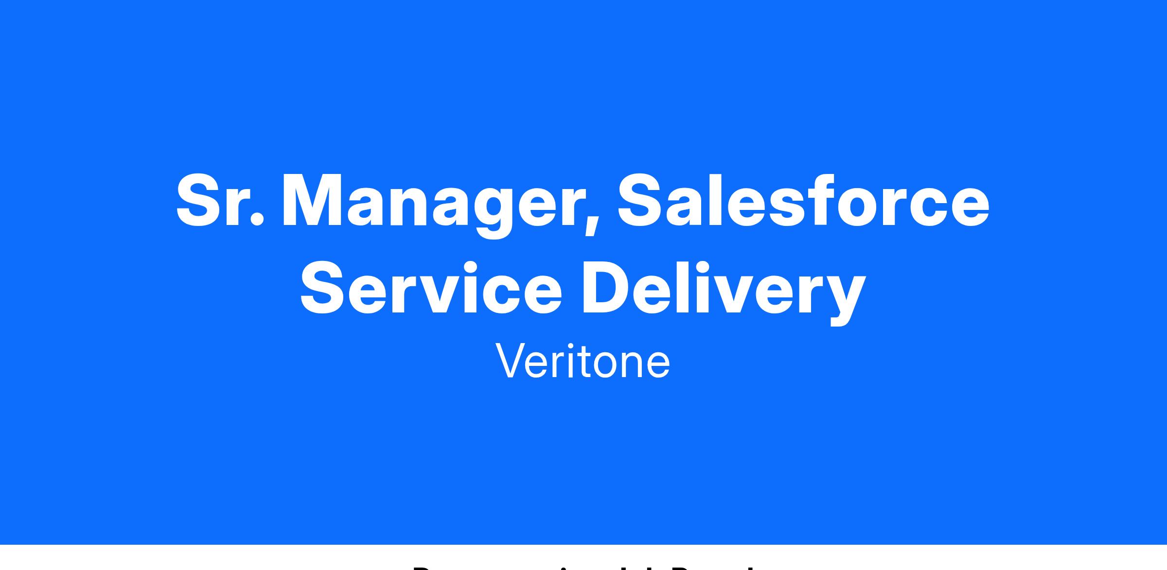 As the Sr. Manager of Salesforce Service Delivery you will be instrumental in the overall Business Operations, Enterprise Applications/Systems and internal Project Management at Veritone. You will have the opportunity to spearhead many initiatives that ultimately increase visibility and insight into the performance of the organization; working cross-collaboratively amongst multiple teams and groups including Marketing, Sales, Product, Customer Success, and other key Business Units. Reporting to the VP, Enterprise Applications; This will be a “hands-on” technical leader role (Salesforce) who promotes a customer-centric support and best in class service delivery culture with a player/coach approach to managing the team.