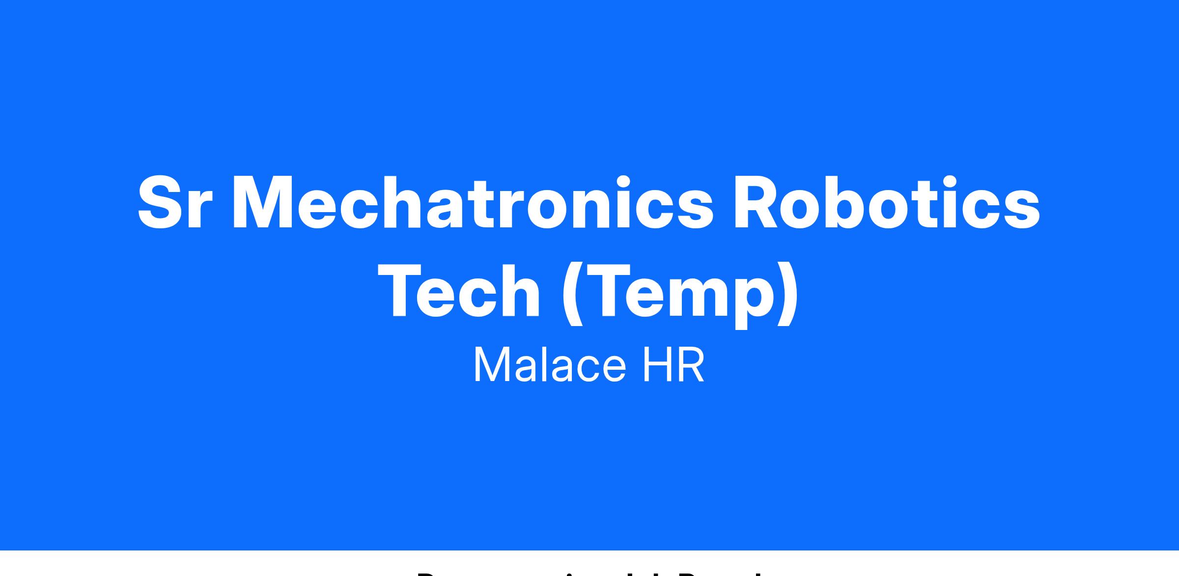 Sr Mechatronics Robotics Tech (Temp)