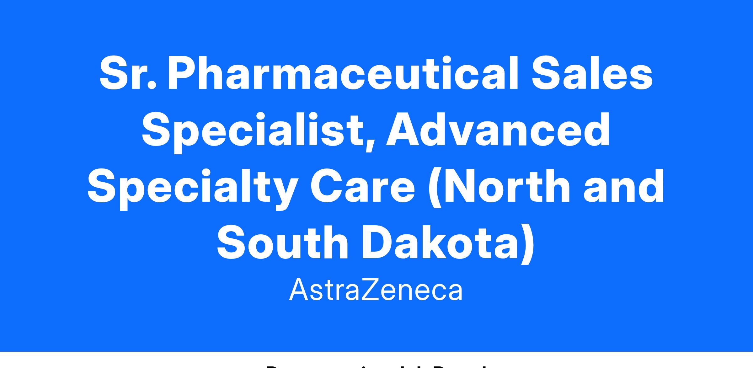 Senior Pharmaceutical Sales Specialist, Advanced Specialty Care – Respiratory Biologics,