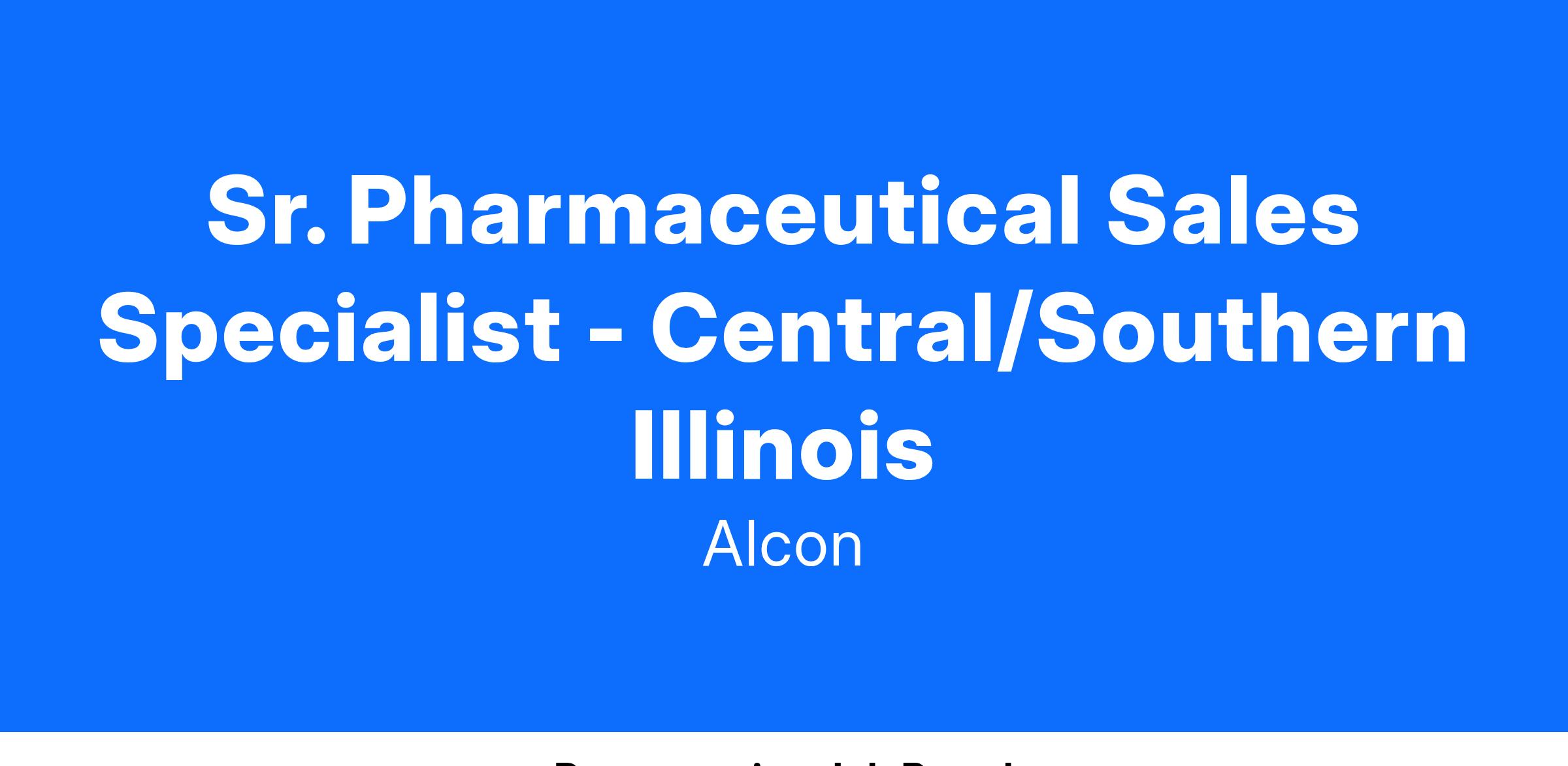 Pharmaceutical Sales Specialist in the Alcon organization working with Ophthalmologists and Optometrists in Central and Southern Illinois