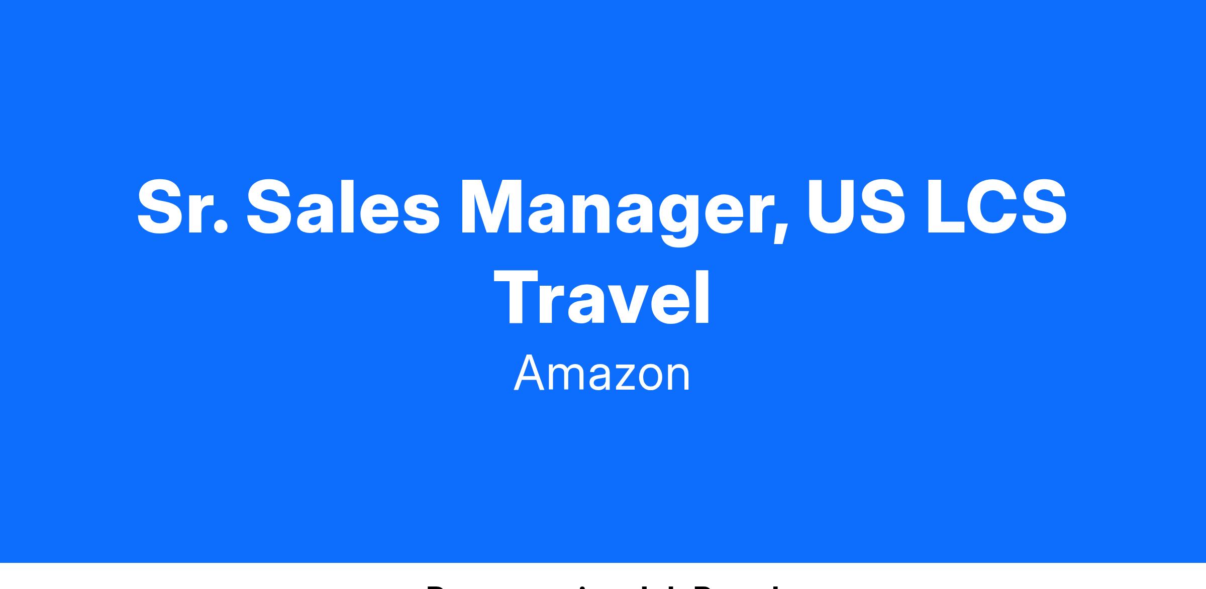 Sr. Sales Manager, US LCS Travel