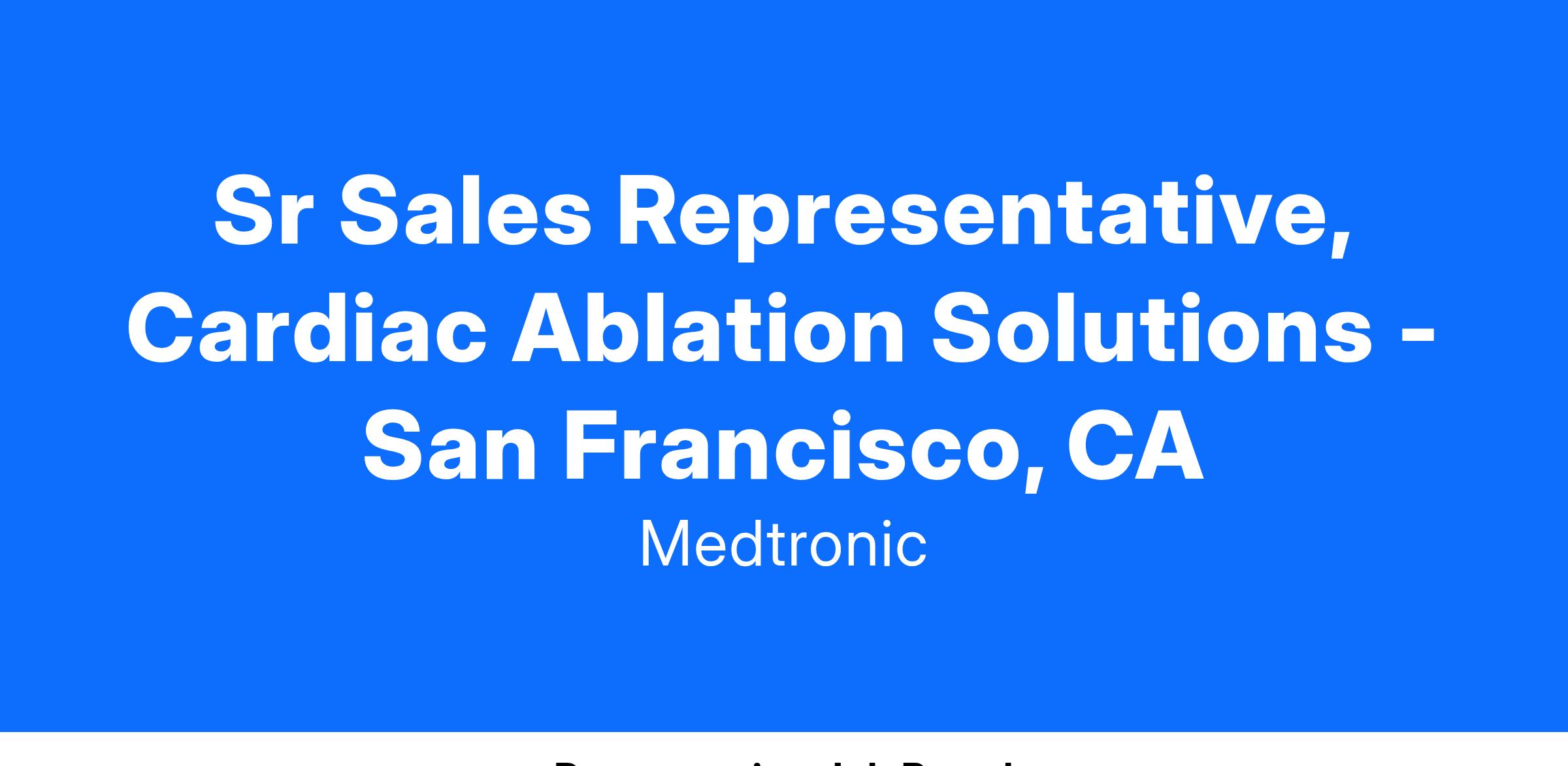 To gain market share and grow market in the Cardiac Ablation Business (CAS) by promoting, selling, and servicing Medtronic's CA Solutions’ products within assigned territory.
