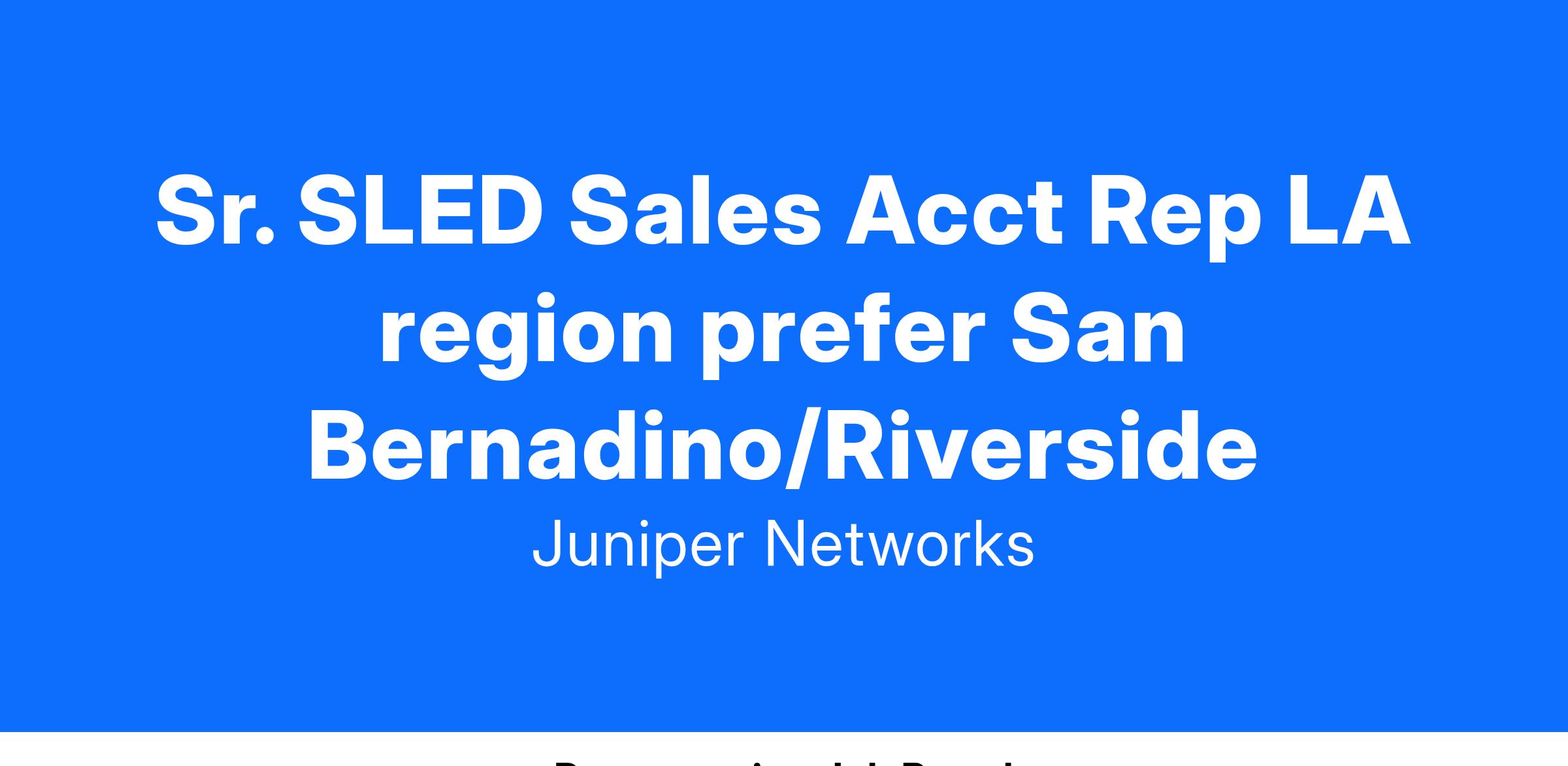 Juniper is looking for a sales professional to develop and grow our business and market share across a defined list of customers within our State, Local and Education accounts. You will excel in a dynamic and exciting environment while leading all prospecting and sales opportunities across all Juniper solutions. This position is a “hunter” type of role that requires an individual who is a self-starter with the ability to grow the SLED business within the Los Angeles region. The territory will include k-12, higher education, and state and local government agencies.