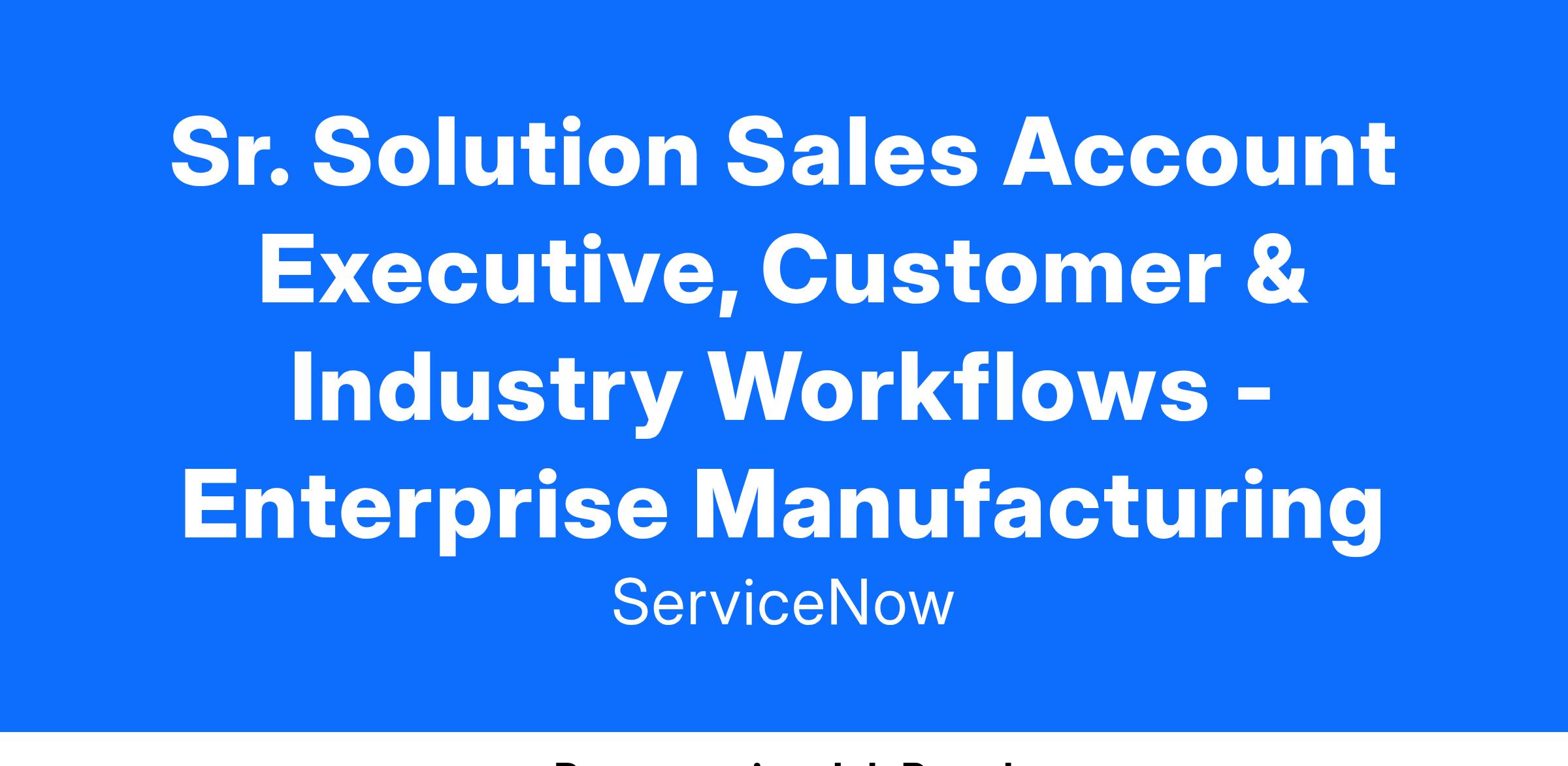 The Solution Sales Executive will oversee market success of ServiceNow's Customer & Industry Workflows products, inclusive of CIWF multi-workflow solutions (as prescribed). You will play a leading role in engaging assigned accounts and be responsible for the creation of new business and pipeline across a substantial portion of the ServiceNow sales cycle and methodology. You will oversee executive relationship management for assigned accounts; lead and partner with virtual teams, including Core Field, Solution Sales, Solution Consulting, Support and Professional Services.