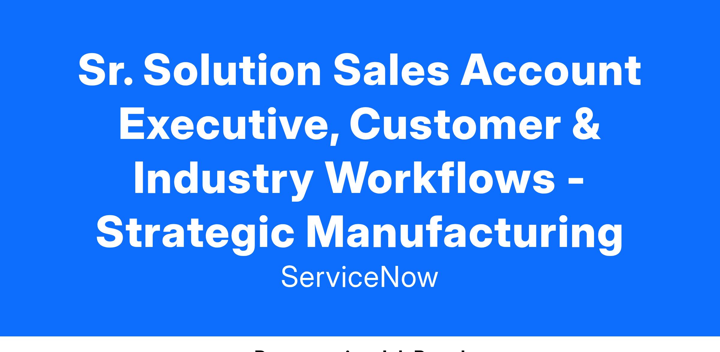 The Solution Sales Executive will oversee market success of ServiceNow's Customer & Industry Workflows products, inclusive of CIWF multi-workflow solutions (as prescribed). You will play a leading role in engaging assigned accounts and be responsible for the creation of new business and pipeline across a substantial portion of the ServiceNow sales cycle and methodology. You will oversee executive relationship management for assigned accounts; lead and partner with virtual teams, including Core Field, Solution Sales, Solution Consulting, Support and Professional Services.