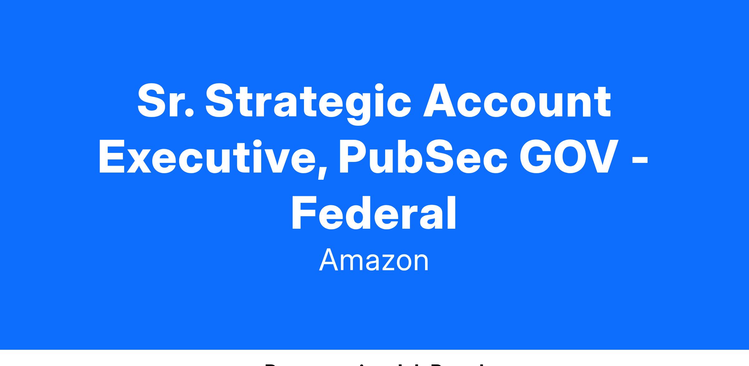 Sr. Strategic Account Executive, PubSec GOV - Federal