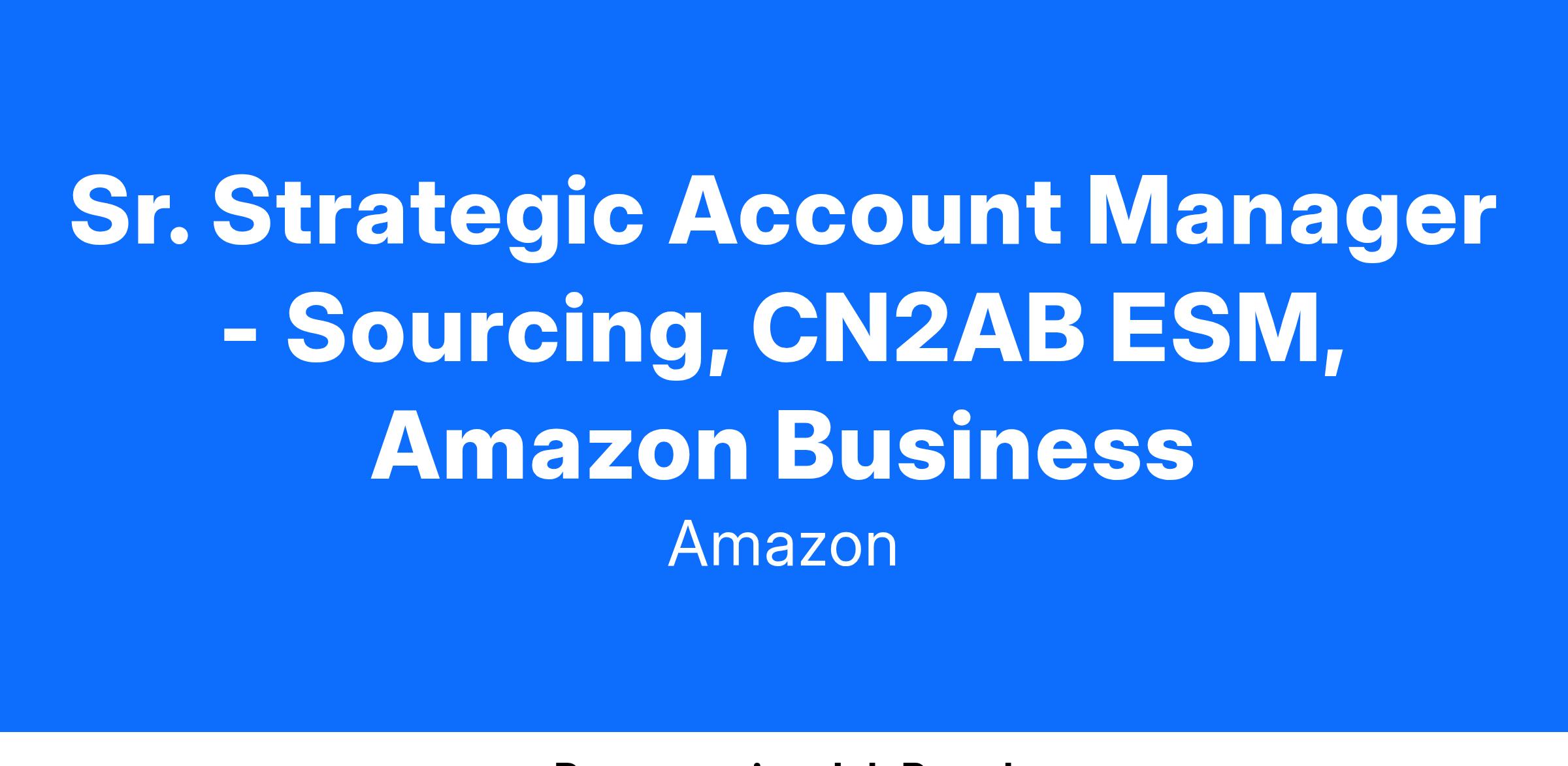 We are looking for a passionate, innovative and results-driven industry expert with strategic account management experience to support China-based sellers’ sourcing needs. This role will collaborate with other existing Seller management team, product team and destination country team to manage Sellers' end-to-end sourcing journey, utilize Amazon's suite of products/services to deliver new selection growth and cost saving for them.