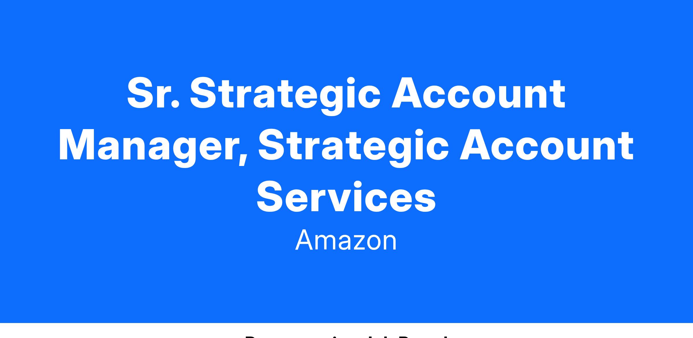 Sr. Strategic Account Manager, Strategic Account Services