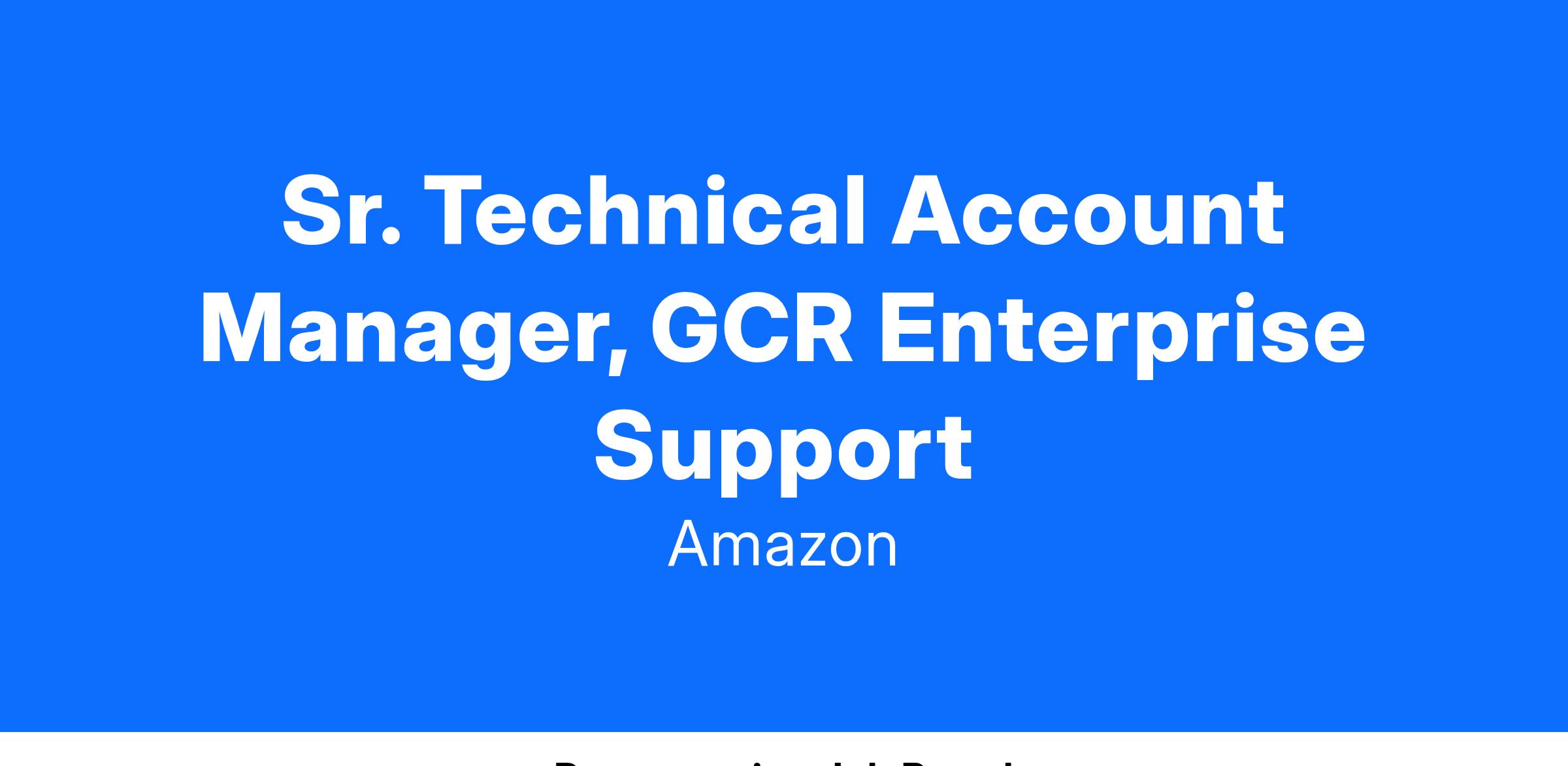 Sr. Technical Account Manager, GCR Enterprise Support