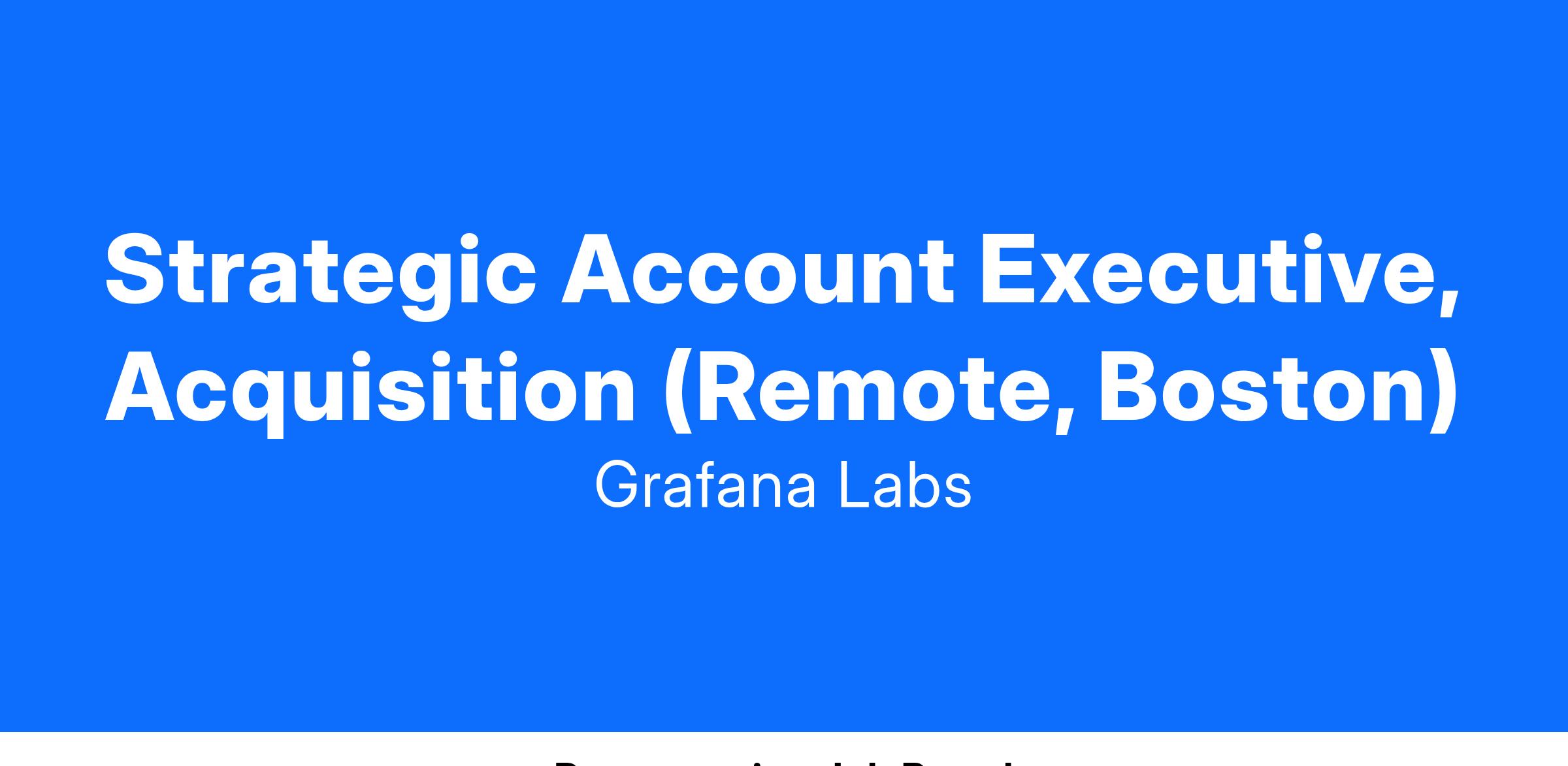 Grafana Labs is looking for an Strategic Account Executive, Aquisition who will be responsible for prospecting and closing new business across the North East region. You will identify, nurture and close opportunities with new customers. You will manage forecasts and track customer data. We're strong proponents of a consultative sales approach - learn about the customer's needs first before talking about our products. Your expertise will be critical in helping articulate the value of our products, work with the customer during the trial phase and hand off a strong relationship to our Customer Success team.