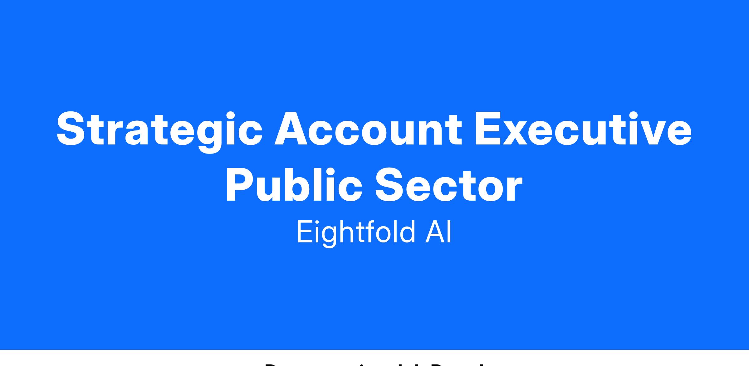 We are looking for a Strategic Account Executive to sell to the Public Sector. The ideal candidate is able to drive qualified opportunities into enterprise deals and is able to grow the license revenue on existing clients. This person also knows how to educate clients about our vision and tailoring it to our customer's situation. We are looking for a motivated and experienced sales professional who is a self-starter and able to expand the Eightfold client base by working within the sales team and with sales engineering and our implementation and technology partners.