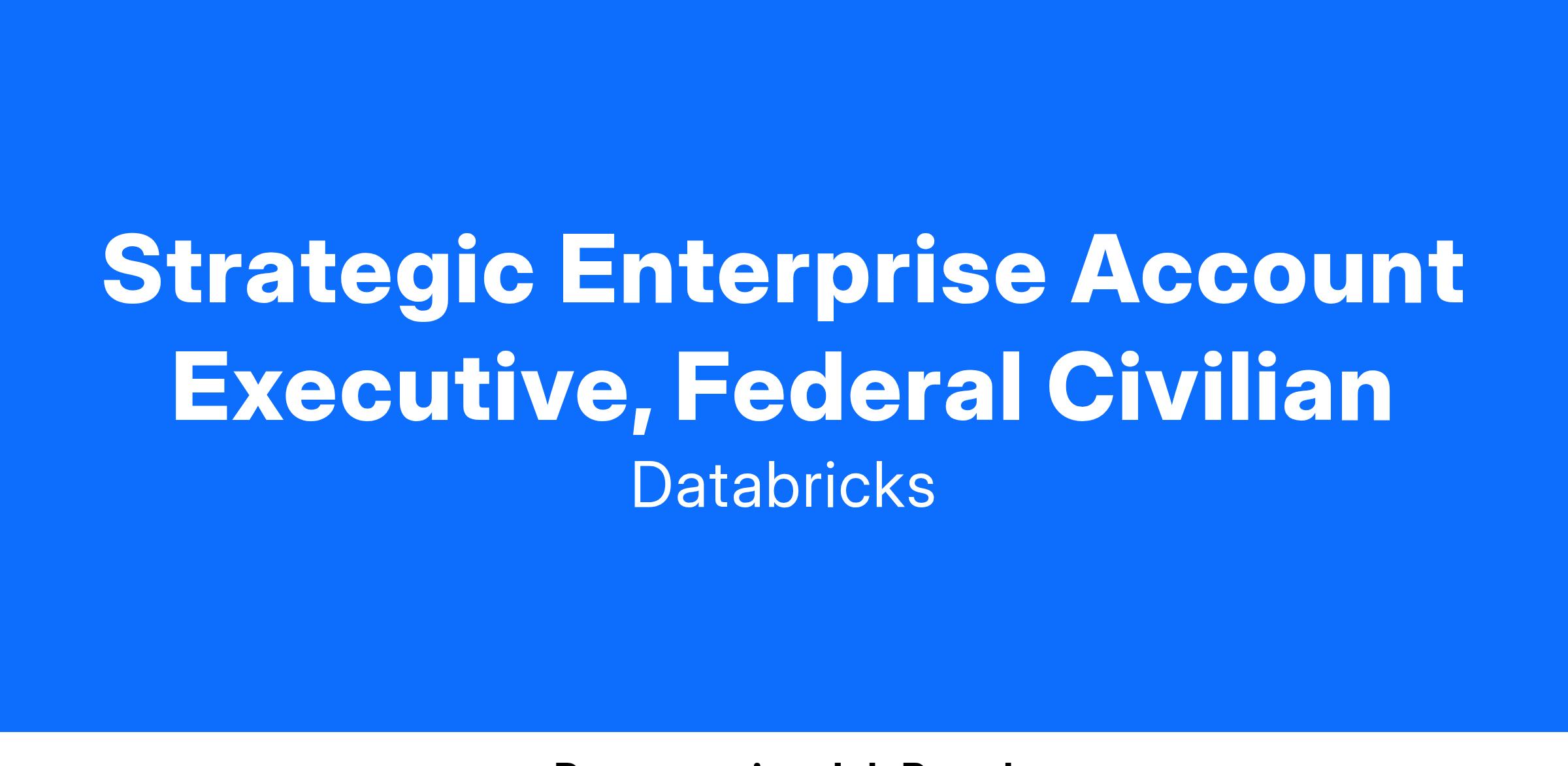 As a Strategic Enterprise Account Executive at Databricks, you will be responsible for driving sales of Databricks within this dedicated set of accounts within the Federal Civlian segment. As an experienced Account Executive, you know how to sell innovation and change through customer vision expansion and can drive deals forward to compress decision cycles. You love understanding a product in depth and are passionate about communicating its value to Public Sector clients. Always looking for new opportunities, you will be expected to net new accounts and expand current footprints. Along with the chance to close an exciting deal, we also offer accelerators above 100% quota attainment.