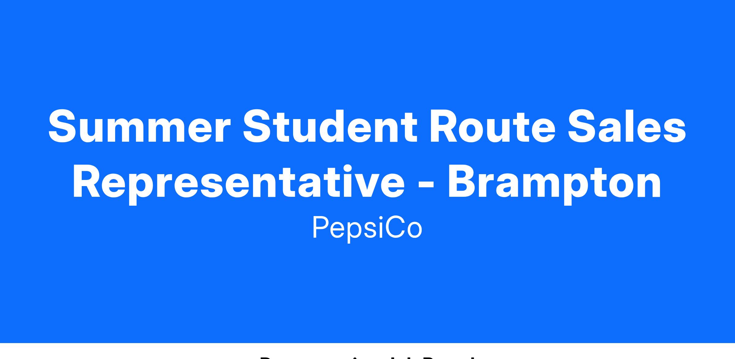 Summer Student Route Sales Representative - Brampton