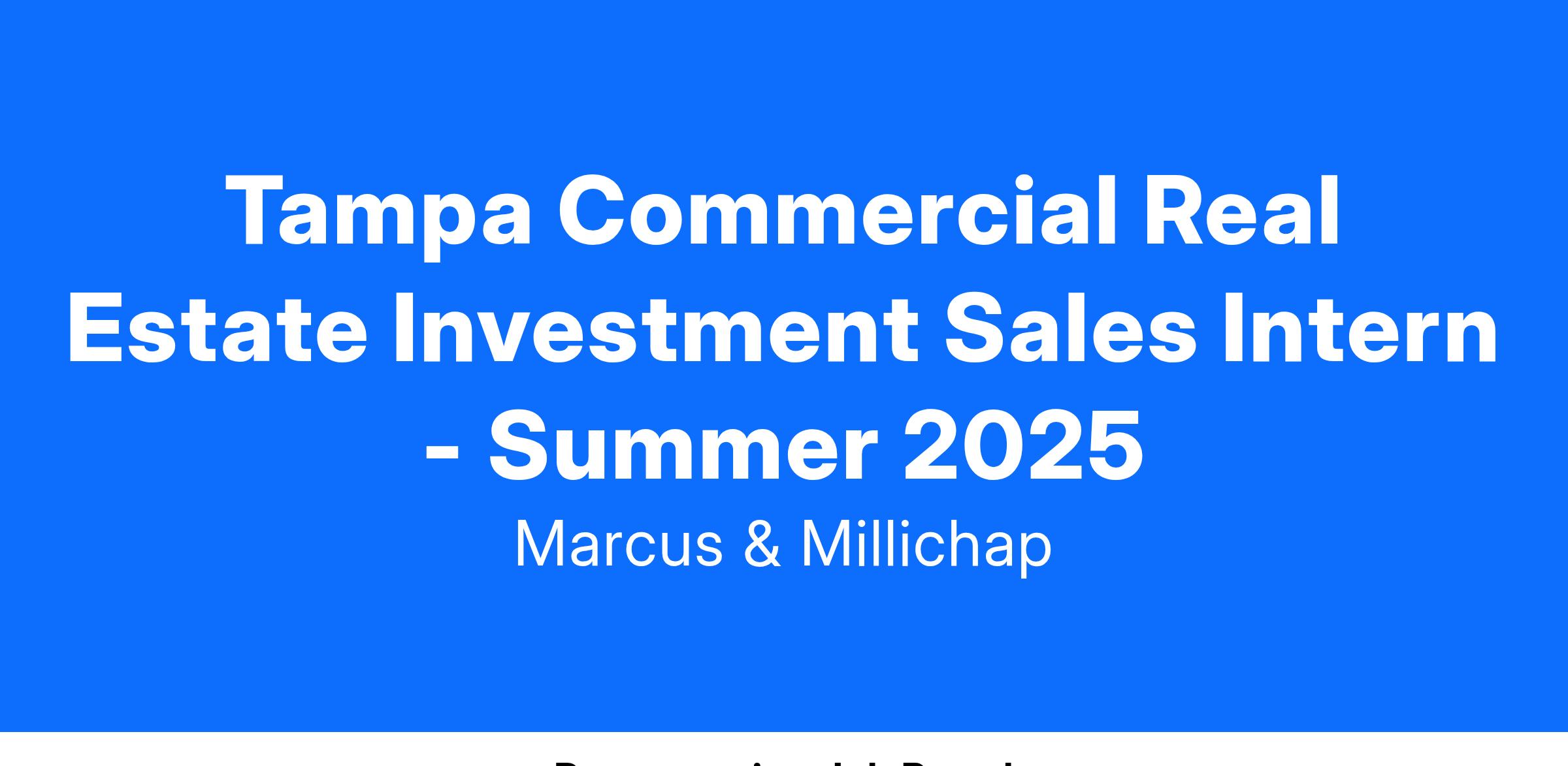 Tampa Commercial Real Estate Investment Sales Intern - Summer 2025