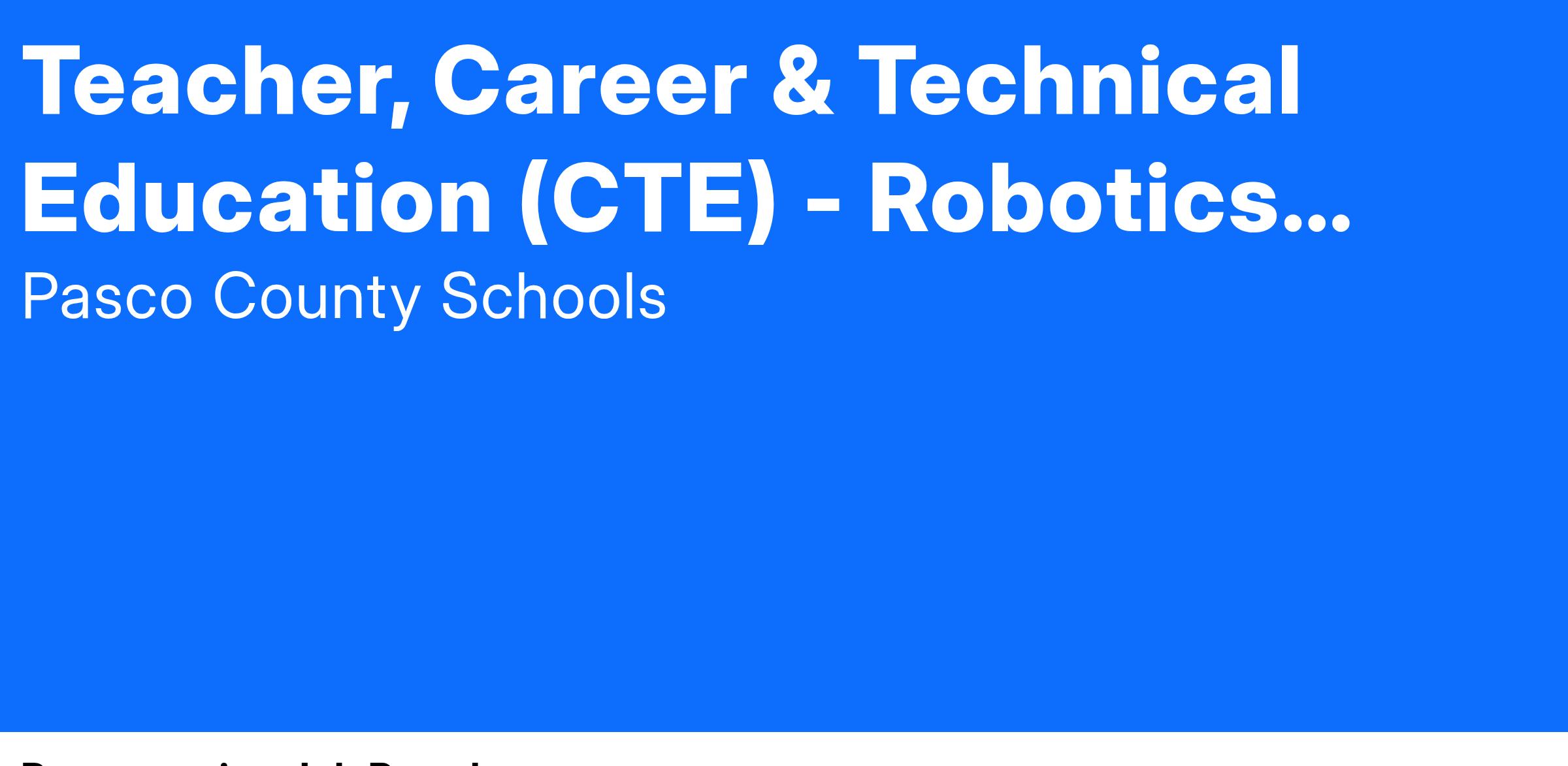***This position may require you to teach an additional period beyond your base contract. Should this occur, you will receive additional compensation at the effective negotiated rate in addition to your base salary for instructing this additional period. This additional amount will be paid as a supplement and will be disbursed in equal payments based on the District’s established payroll calendar for this position. This amount is considered part of your salary for Florida Retirement System purposes.***