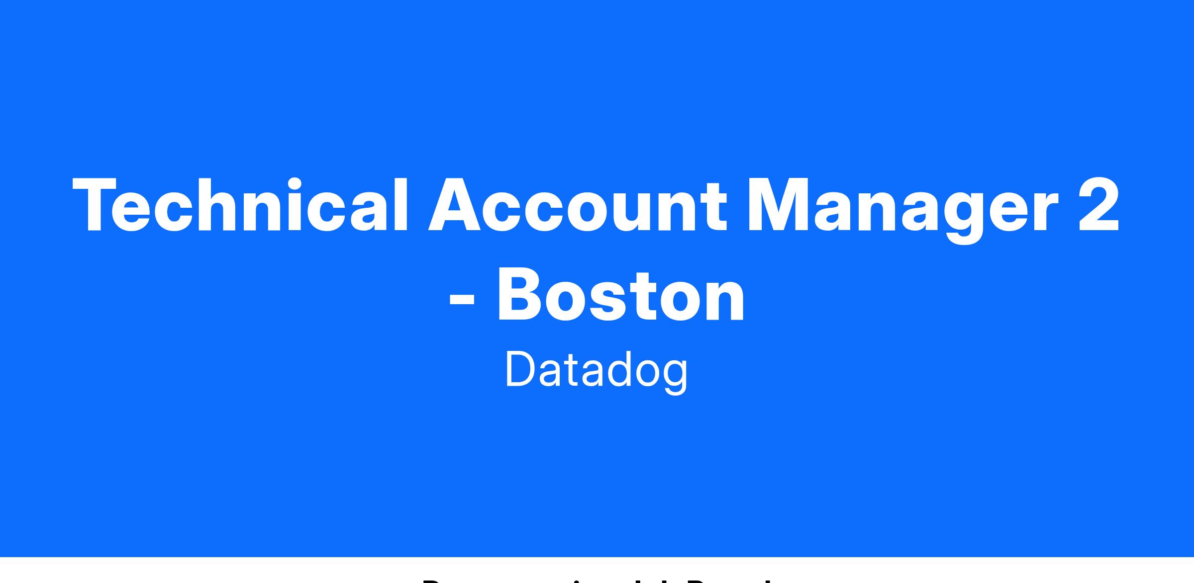 We are Datadog's in-house product experts. The technical solutions team enables Datadog's worldwide growth by educating potential clients and ensuring that existing customers are happy and successful. A Technical Account Manager (TAM) will continue to provide hands-on technical services to our largest customers by supporting, adopting and providing guidance over the comprehensive suite of products and features available at Datadog. A TAM is held in high regard as an expert and trusted advisor for how IT Operations translates to business value.