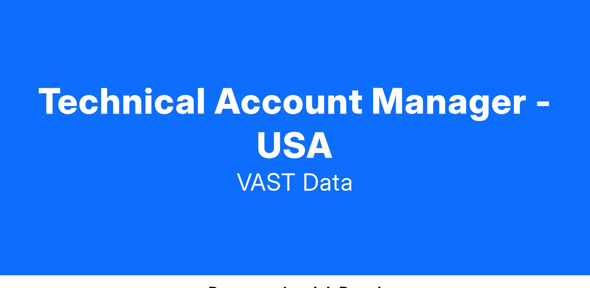 - Build trusted customer relationships based on your customer-first mindset, technical excellence and command of VAST product