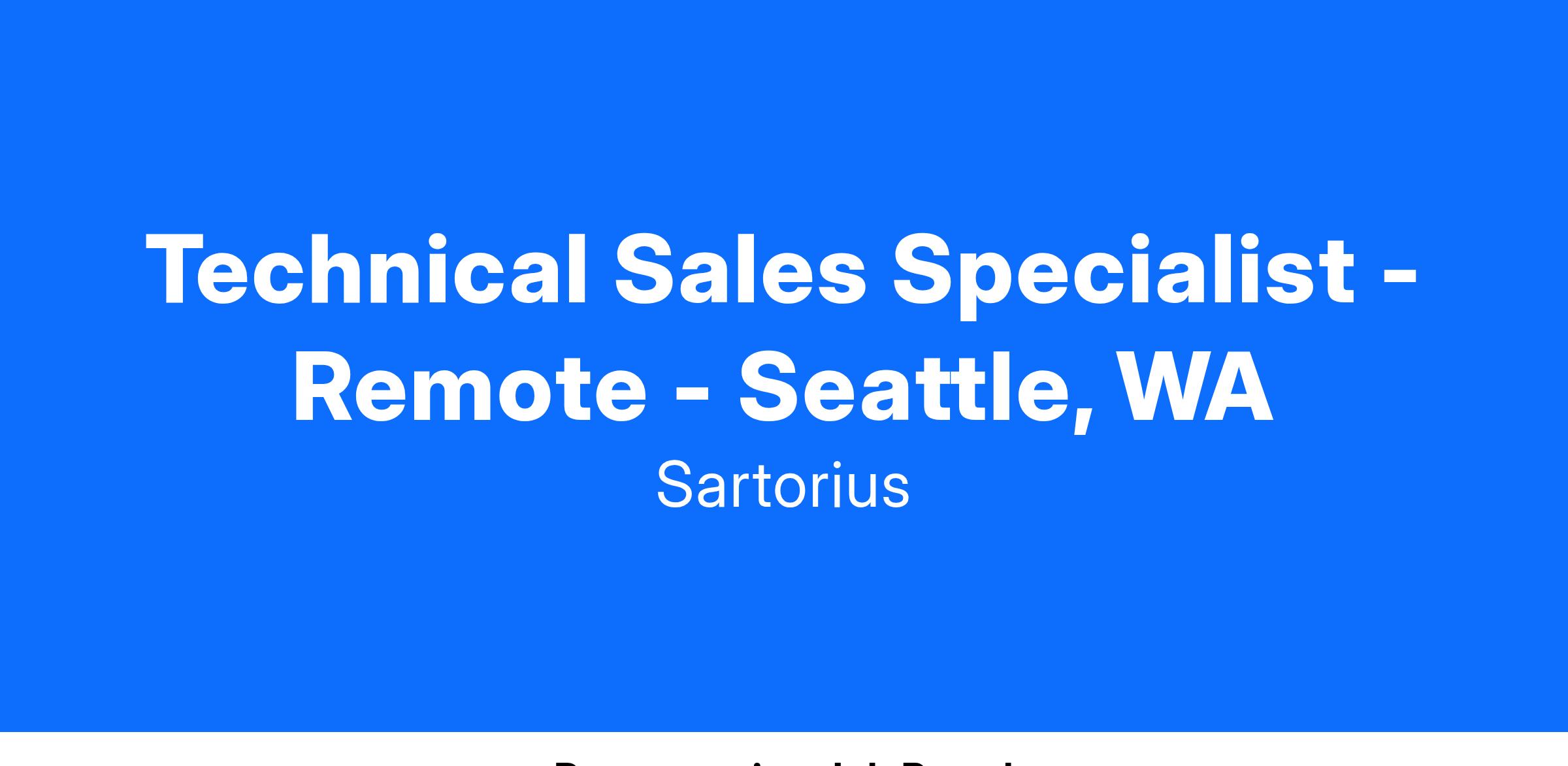 Sartorius is seeking a Technical Sales Specialist to join our growing team in the Seattle Area- covering primarily the Pacific Northwest and East Bay (other areas of the geography include NV).