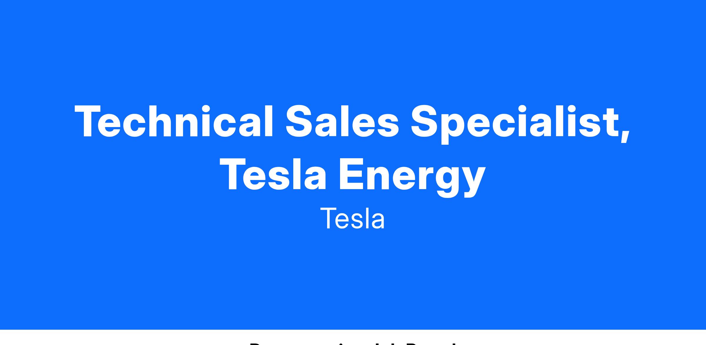 We are seeking a full-time Technical Sales Specialist on our residential energy product channel team. As a leader on this team, you’ll help accelerate the growth of our Powerwall and residential Energy products with our B2B partners, helping them optimize their design and installation of our products, operationalize best practices and unlock constraints to their growth. You’ll be joining a fast paced team, wearing several hats focused on the success of our B2B channel partners. Besides a rock-solid work ethic and strong team-oriented personality, leaders on our team display excellent communication skills (internal and external), creativity and passion, and a desire to break new ground in a constantly shifting landscape.