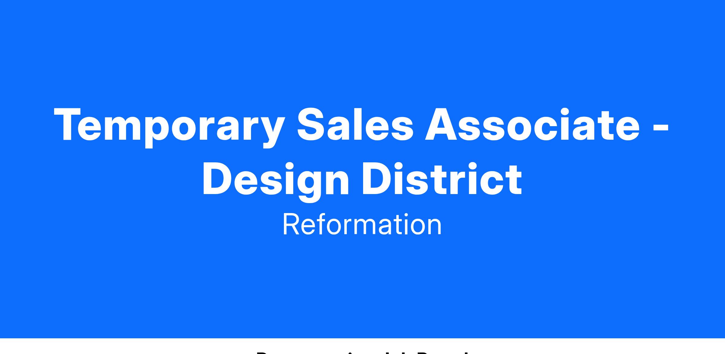 No position at Reformation is about the status quo, every team member is passionate about building a company rooted in excellence. Obsessed with customers and sustainability we use tech to create a unique interaction between our customers, employees, and the Reformation brand. The Associate will execute all efforts required to achieve individual sales goals.