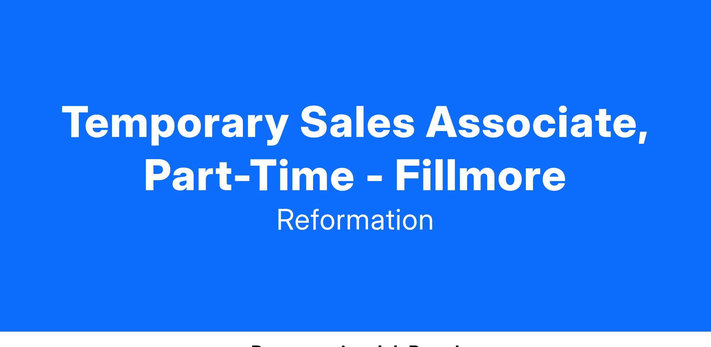 Temporary Sales Associate, Part-Time - Fillmore