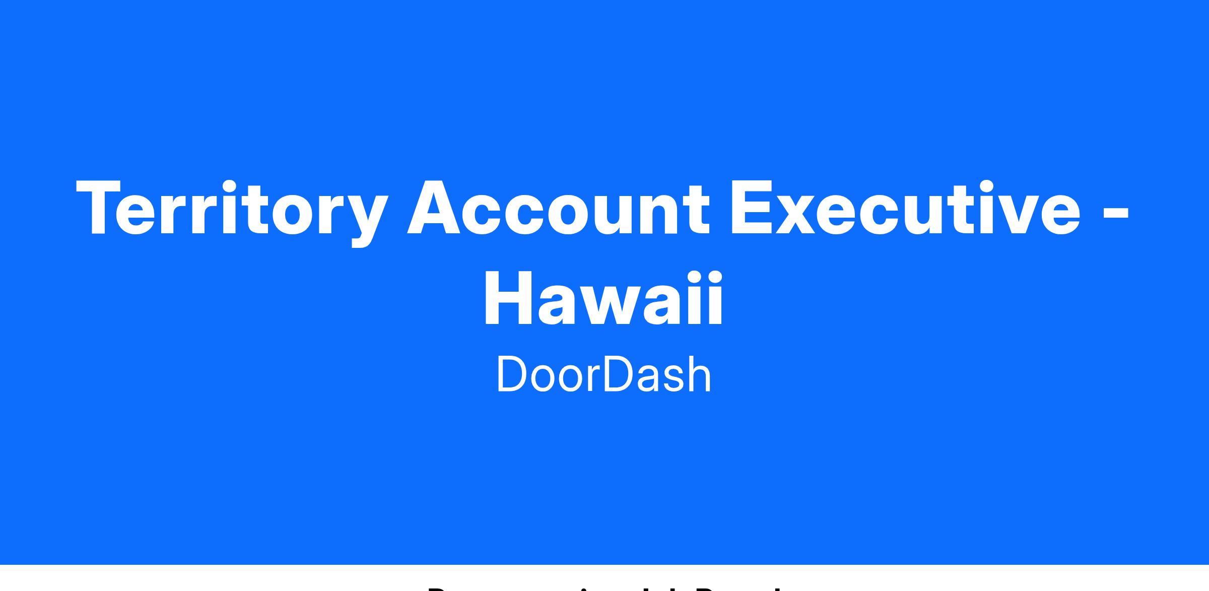 Territory Account Executive - Hawaii
