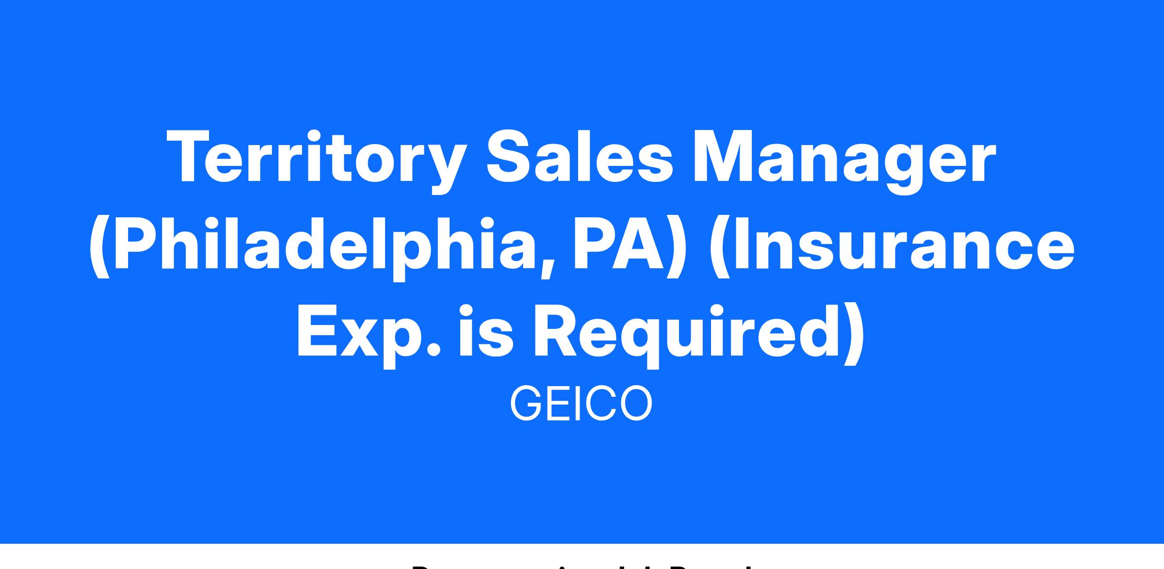 We are seeking a Territory Sales Manager position who will be responsible for growth of agency relationships to increase profit of GEICO and GEICO-affiliated products within an assigned area of responsibility. OVERSEES the development and execution of policies that cater to increasing agency relationships.
