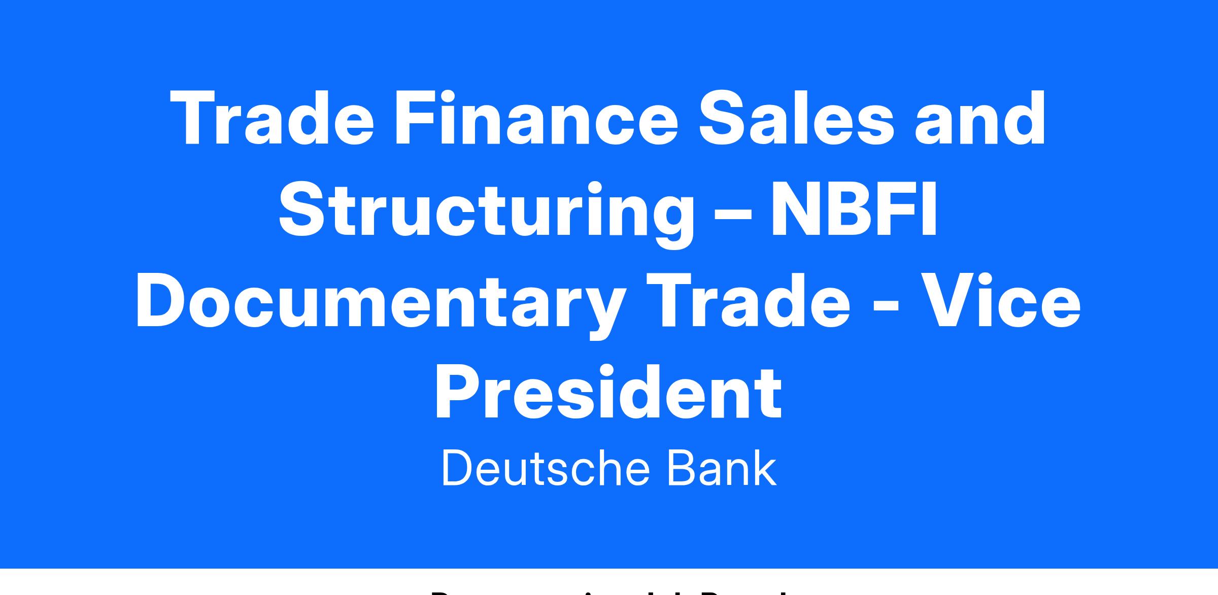 Job Title Trade Finance Sales and Structuring – NBFI Documentary Trade