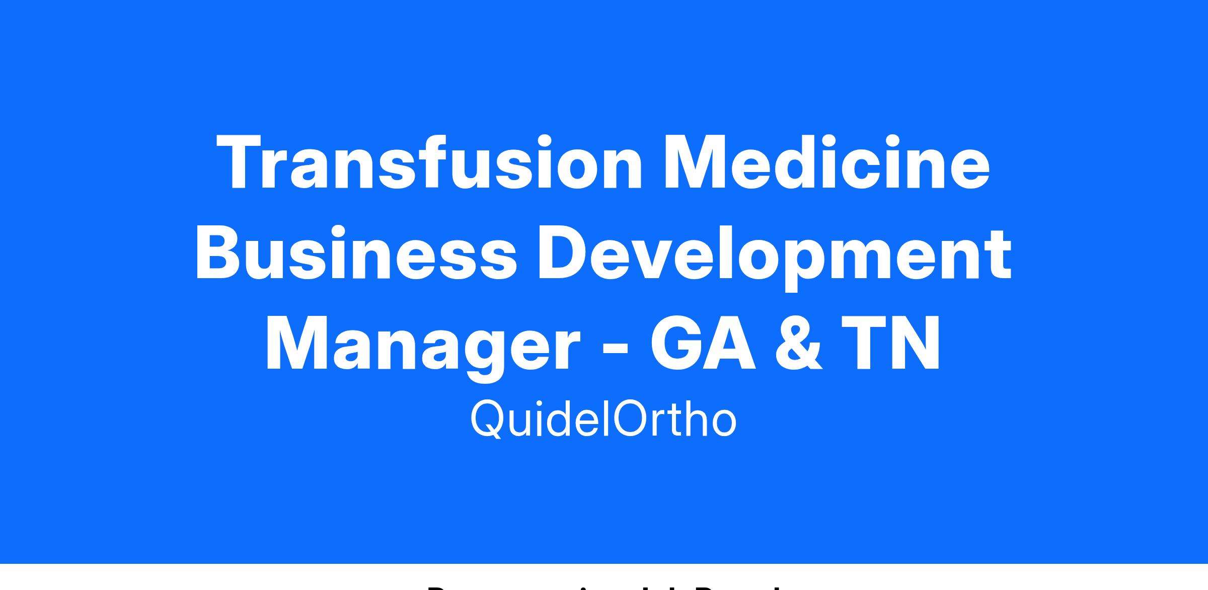 As we continue to grow as QuidelOrtho, we are seeking a Transfusion Medicine Business Development Manager in the Midsouth Region. This position is a front-line quota-carrying teammate responsible for the sale of Transfusion Medicine product lines to customers within a geographic territory. The position is responsible for acquisition, conversion, implementation, and adoption of competitive Transfusion Medicine accounts. Additionally focuses on retention of high value strategic current customers by teaming with Account Managers, Technical Specialists and Strategic Account Executives as applicable.