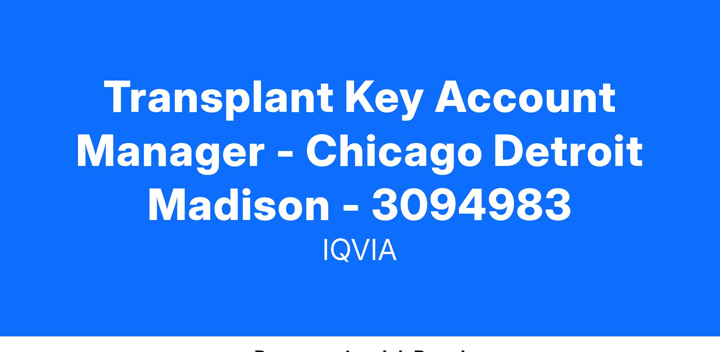 Transplant Key Account Manager - Chicago Detroit Madison - 3094983