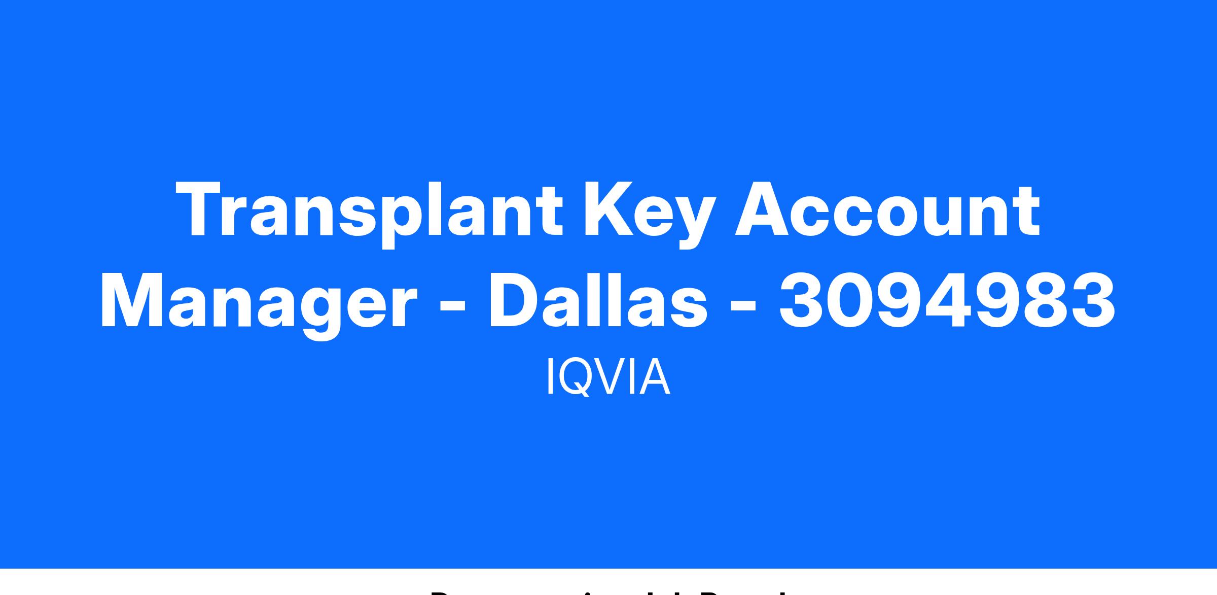 Transplant Key Account Manager - Dallas - 3094983