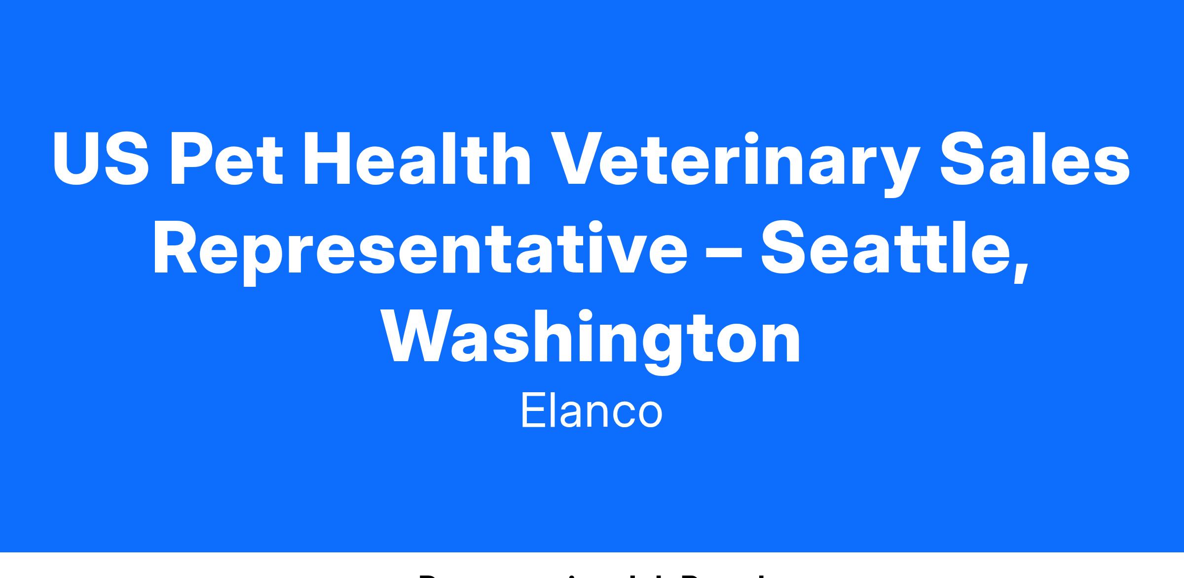 Experience: At least 2 years of experience in companion animal veterinary pharmaceutical sales or equivalent selling experience in a competitive selling environment or previous Elanco intern