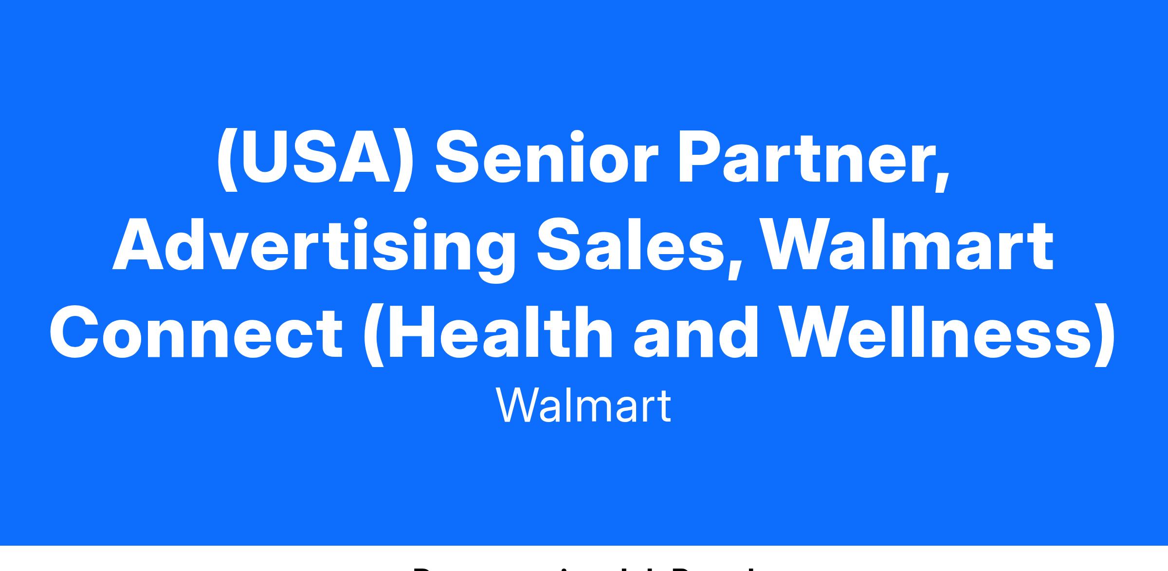 Senior Partner Manager, Health & Wellness - Walmart Connect