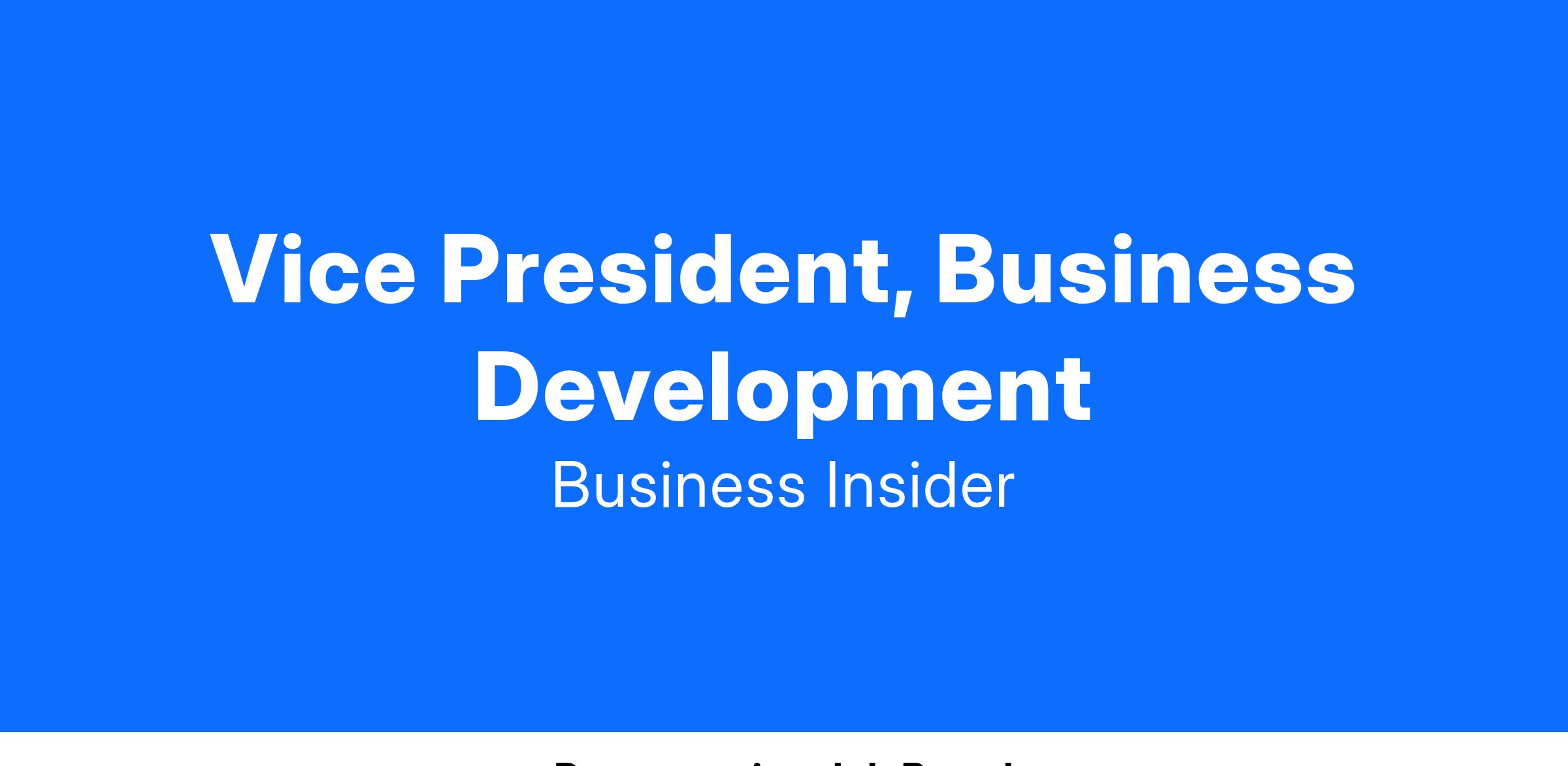 We're looking for someone who is comfortable in a fast-paced environment, and will find new opportunities through extensive analysis and research. As a key member of the business development team you will be influencing the future of Business Insider, working directly with executives and leaders to find business deals that drive growth and innovation and keep BI at the forefront of publishers.