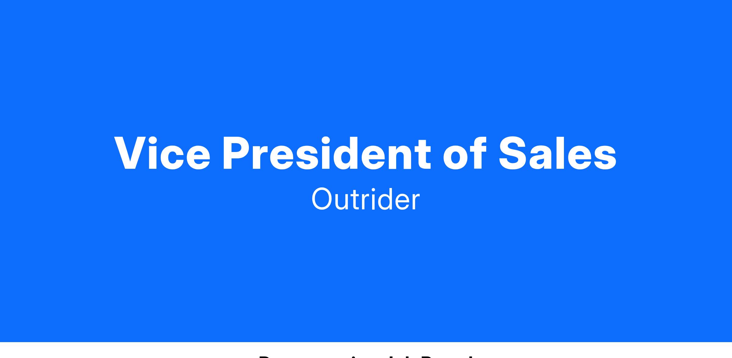 Outrider is seeking a highly motivated and experienced Vice President of Sales who is eager for a hands-on role leading the companyβs commercial expansion across Fortune 500 enterprise customers. This position is a crucial leadership position in the organization and requires exceptional selling skills in addition to exceptional collaboration with Product, Engineering, and field teams. The position reports to the Chief Executive Officer.