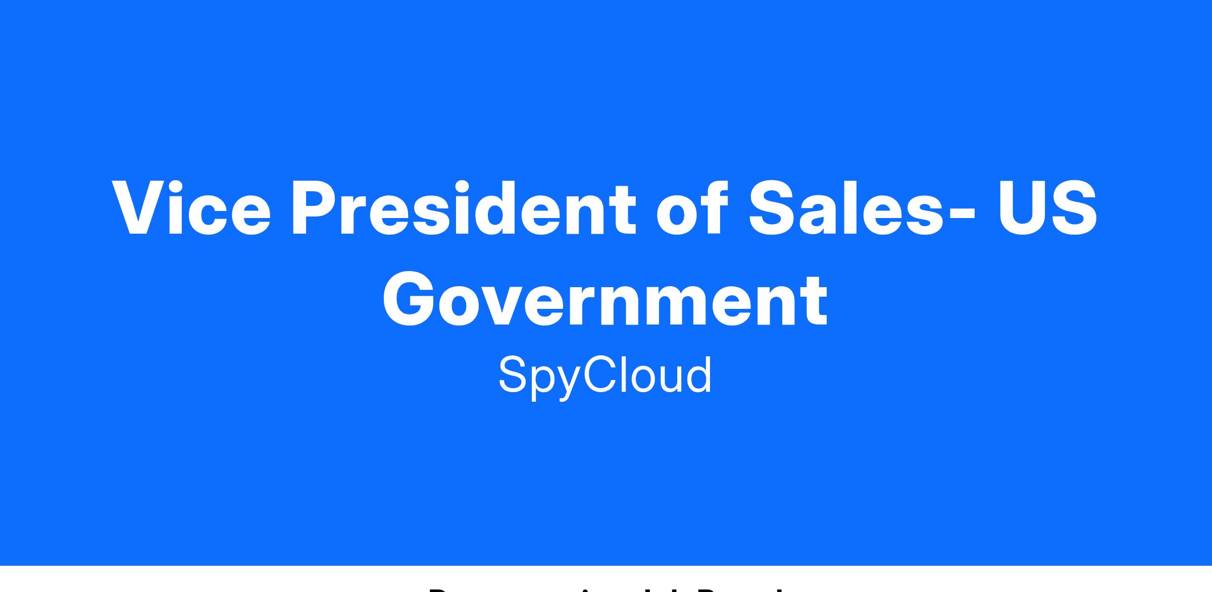 If you are a dynamic sales leader with a passion for cybersecurity and a drive to excel in the US Government sector, we invite you to join our team at SpyCloud. Together, we will continue to protect digital identities and defend against cyber threats on a global scale.