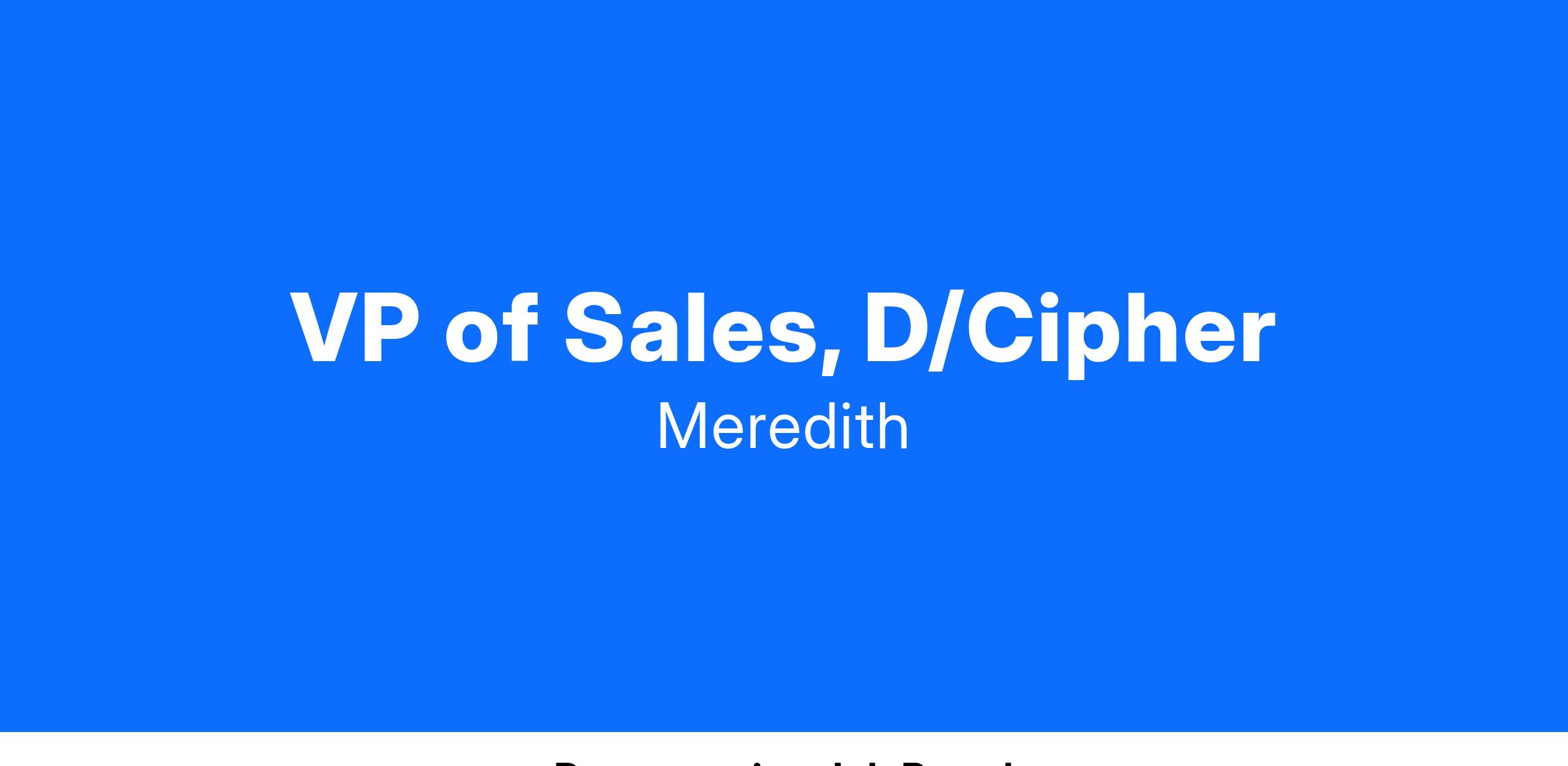 VP of Sales, D/CipherJob Description