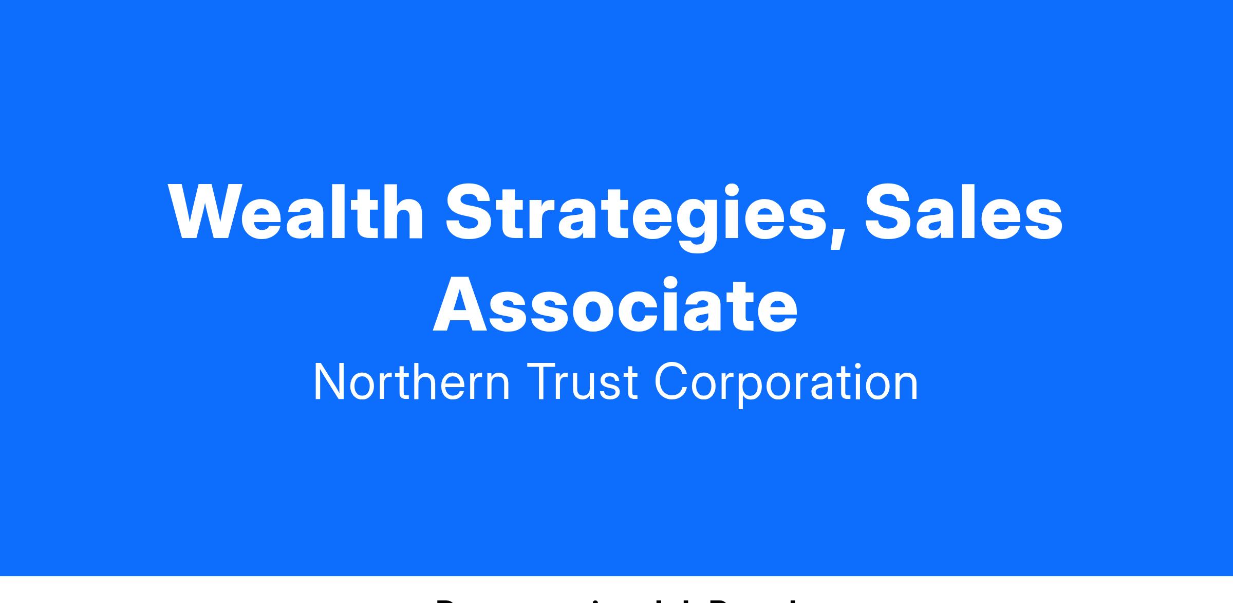 Wealth Strategies, Sales Associate