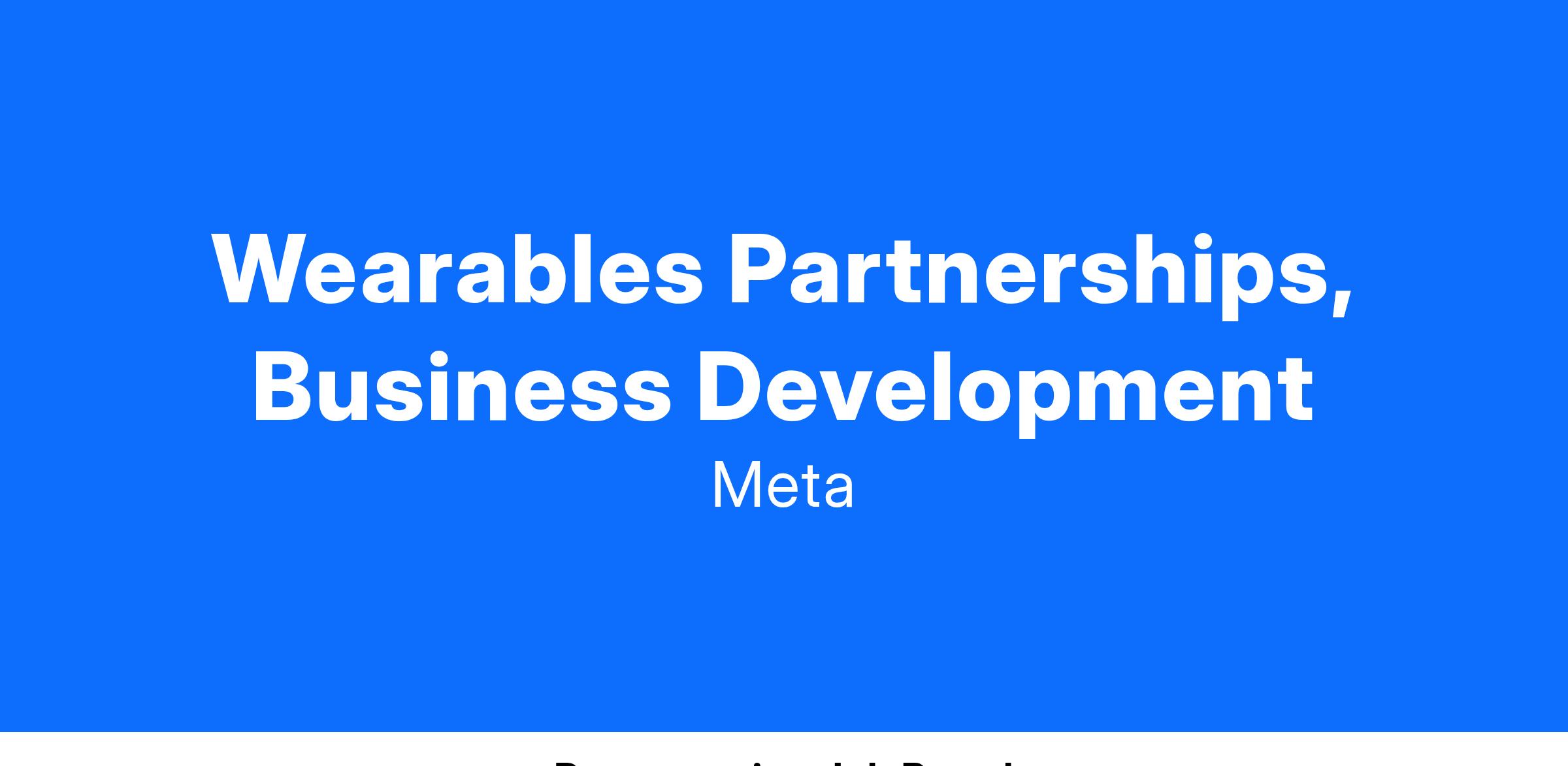 The Wearables Partnerships team is seeking a talented, highly motivated and experienced individual to help drive new product partnerships for emerging technology and new products. You'll be at the center of a multi-disciplinary, cross-functional team pushing on every aspect of bringing new wearable products to market. You will be responsible for leading partnership efforts across Smart Glasses and Wearables, and working closely with some of our most strategic partners. This work is very much zero to one and requires someone that is excited to jump into new environments and execute across ambiguity. This position requires high levels of creativity, strategic thinking, and troubleshooting as you will be leading deals that include a complex array of terms, while working cross-functionally with our Product, Engineering, Marketing and Legal teams to identify potential solutions. This is a global role with teams that span across the US and Europe. You will be required to travel both for external and internal meetings to support your partners and the team.