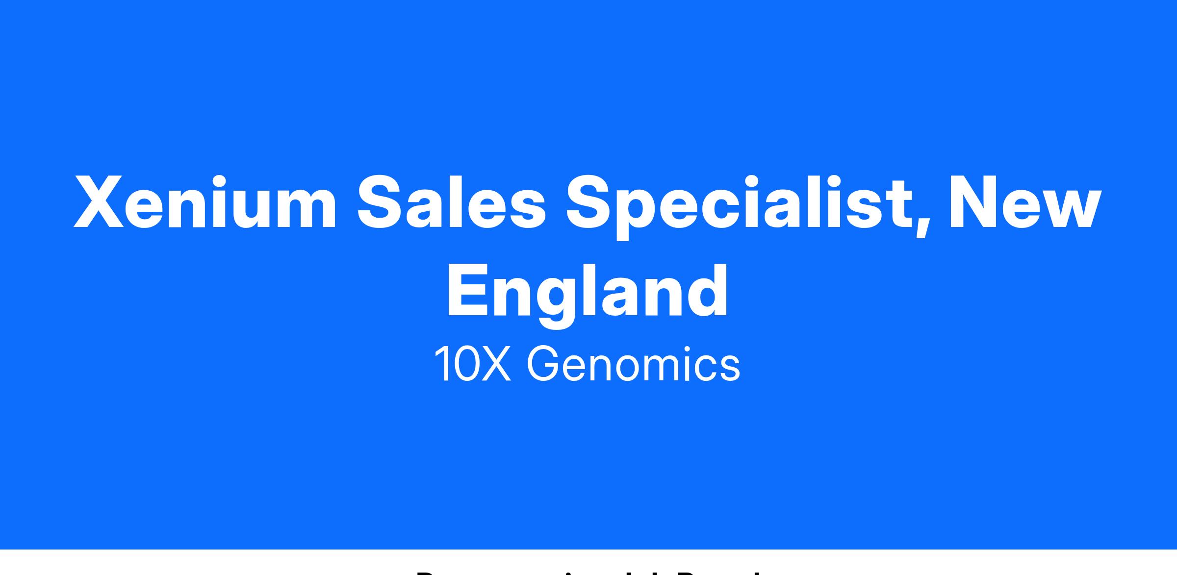 We are seeking a Xenium Sales Specialist, New England, for a field sales-based position responsible for the sale of our in-situ platform and reagents. The Xenium Sales Specialist will have strong technical knowledge in the spatial field and will demonstrate technical credibility to effectively consult with customers to influence key decisions on technology and product choices. Strong business acumen is required to build successful account and territory plans and translate territory strategy into business results.